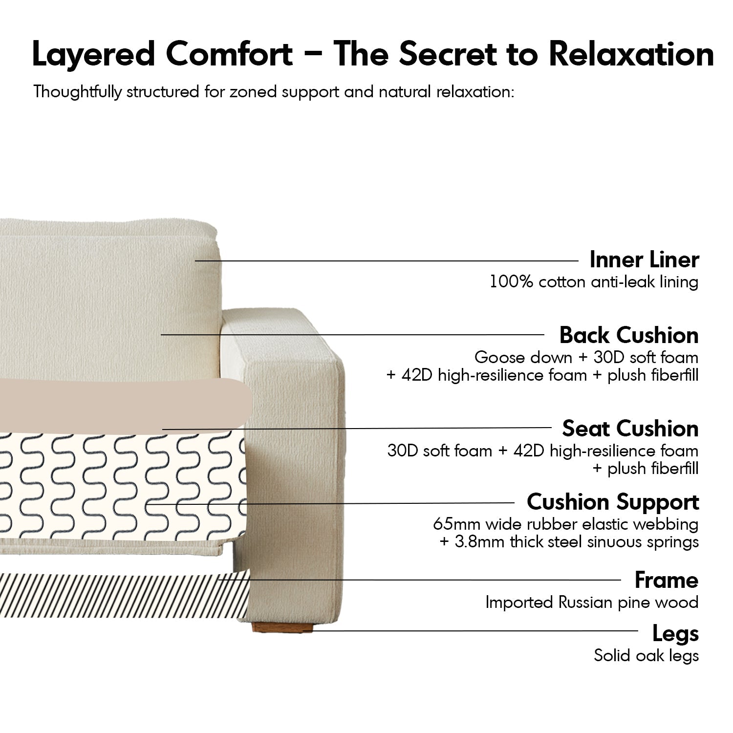 Natural Goose Down Feather / High-Density Foam (30D/42D) / Fiber (3A)