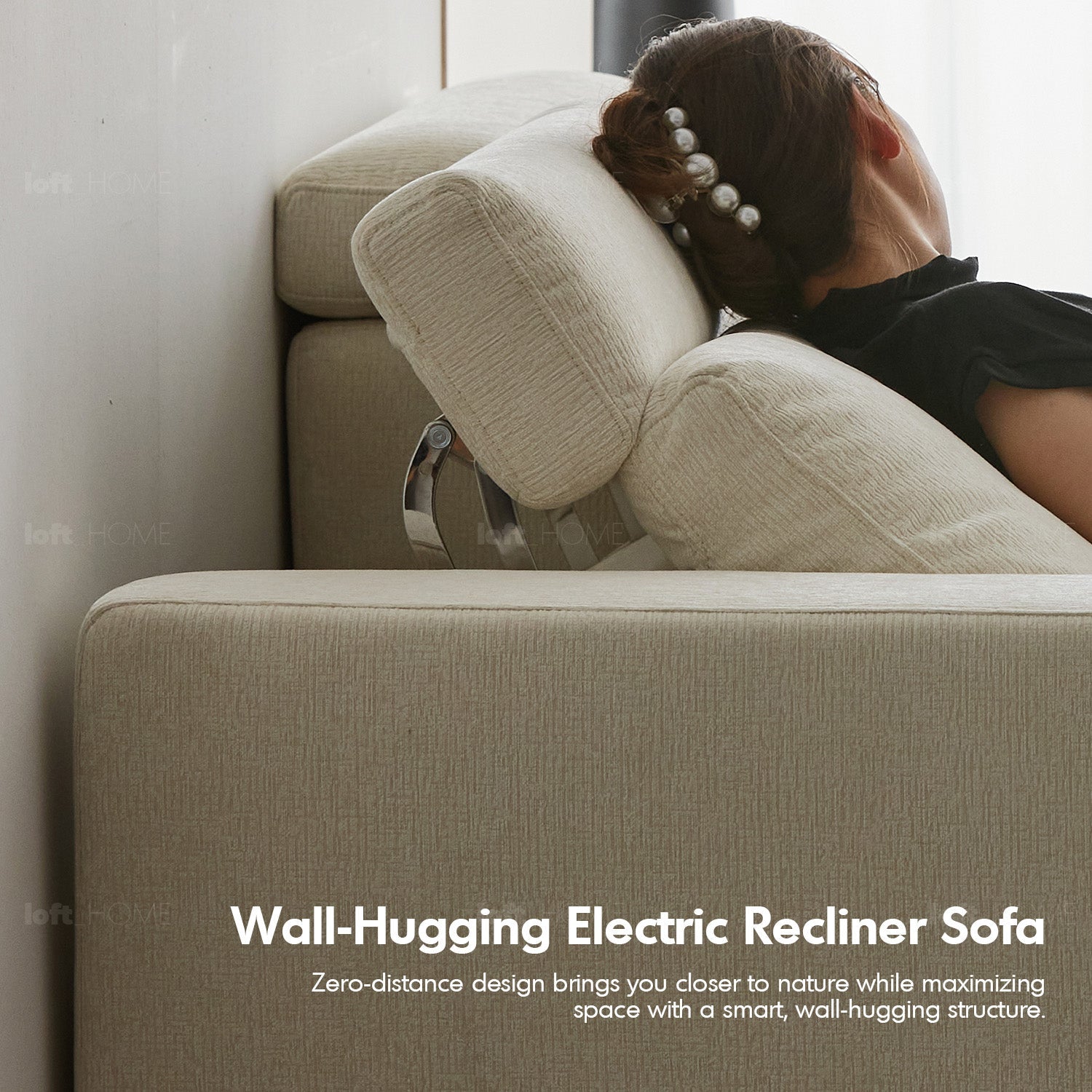 Minimalist Chenille Velvet Fabric Electric Recliner 2 Seater Sofa STRATUS offers wall-hugging functionality, independent reclining, plush chenille fabric, and smooth, quiet comfort—ideal for modern living.