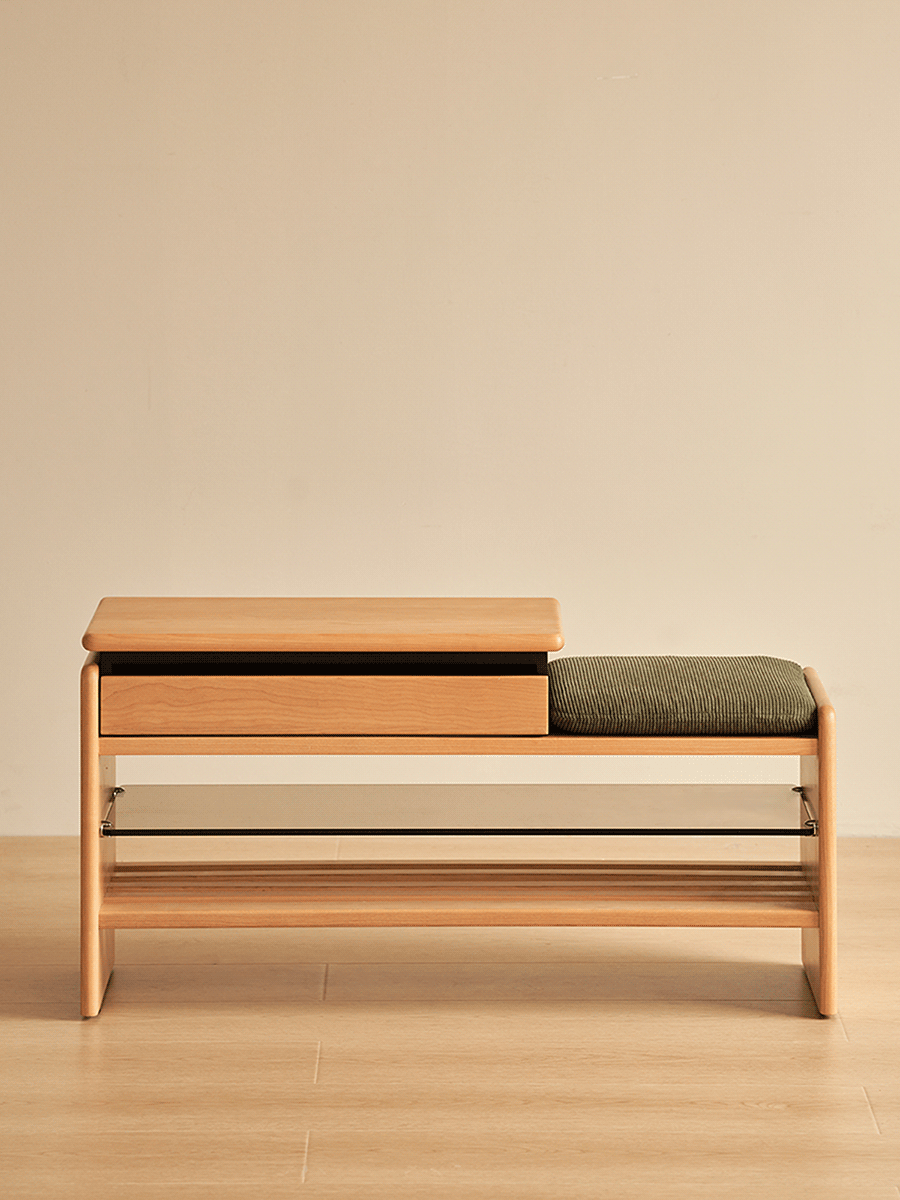 Scandinavian Cherry Wood Shoe Changing Bench MORI