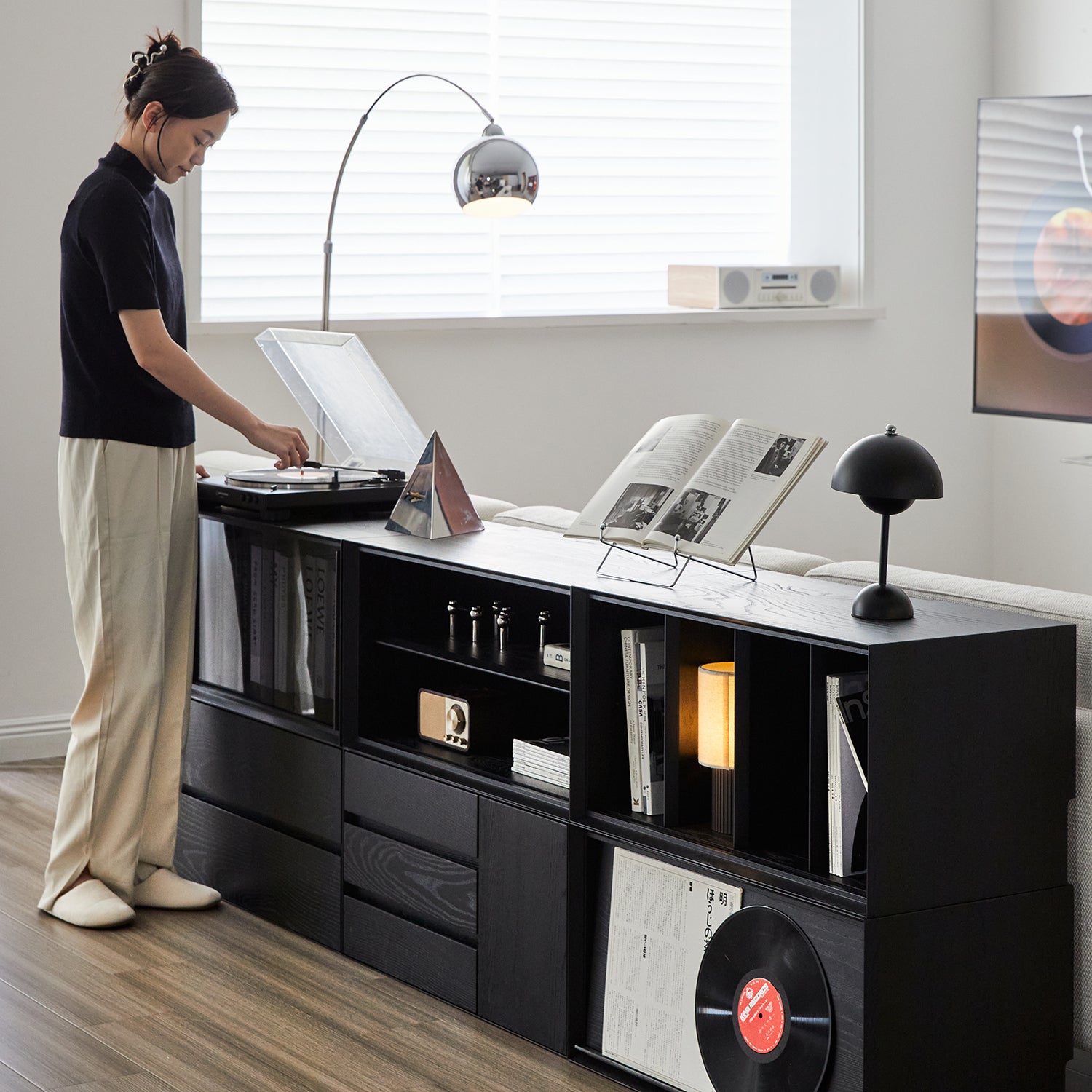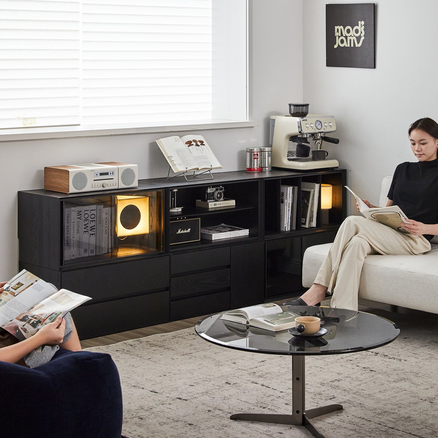 Open and closed compartments support display and concealed storage, helping you organize everyday items while keeping a clean visual balance. |