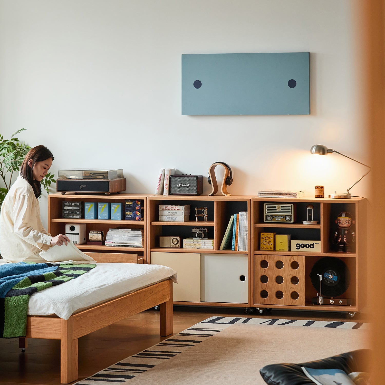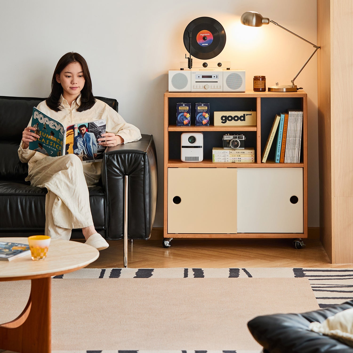 With its modern Bauhaus inspired color blocking and minimalist lines, it blends easily into any room and elevates your home style