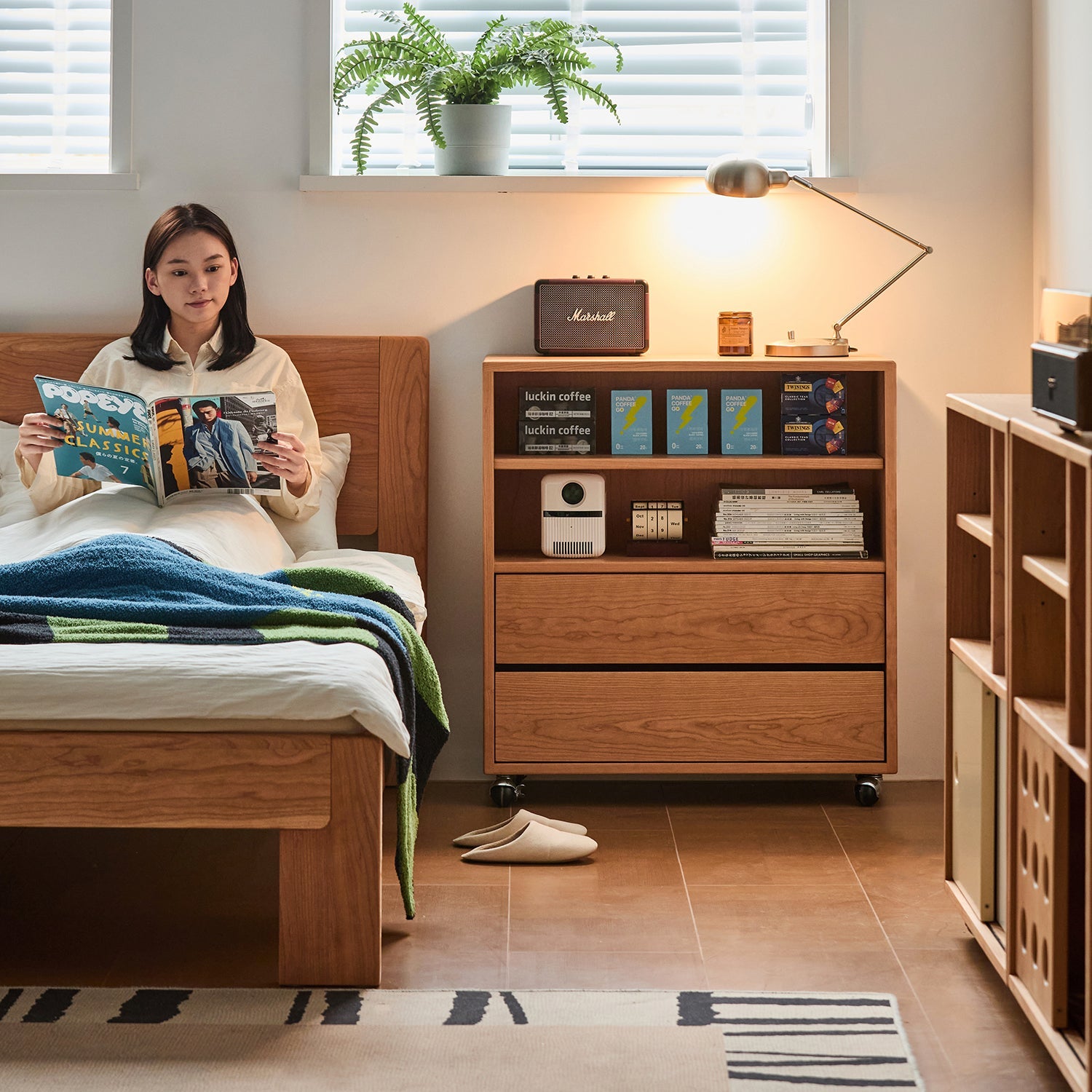 Scandinavian Cherry Wood Wheel Mobility Cabinet TIME
