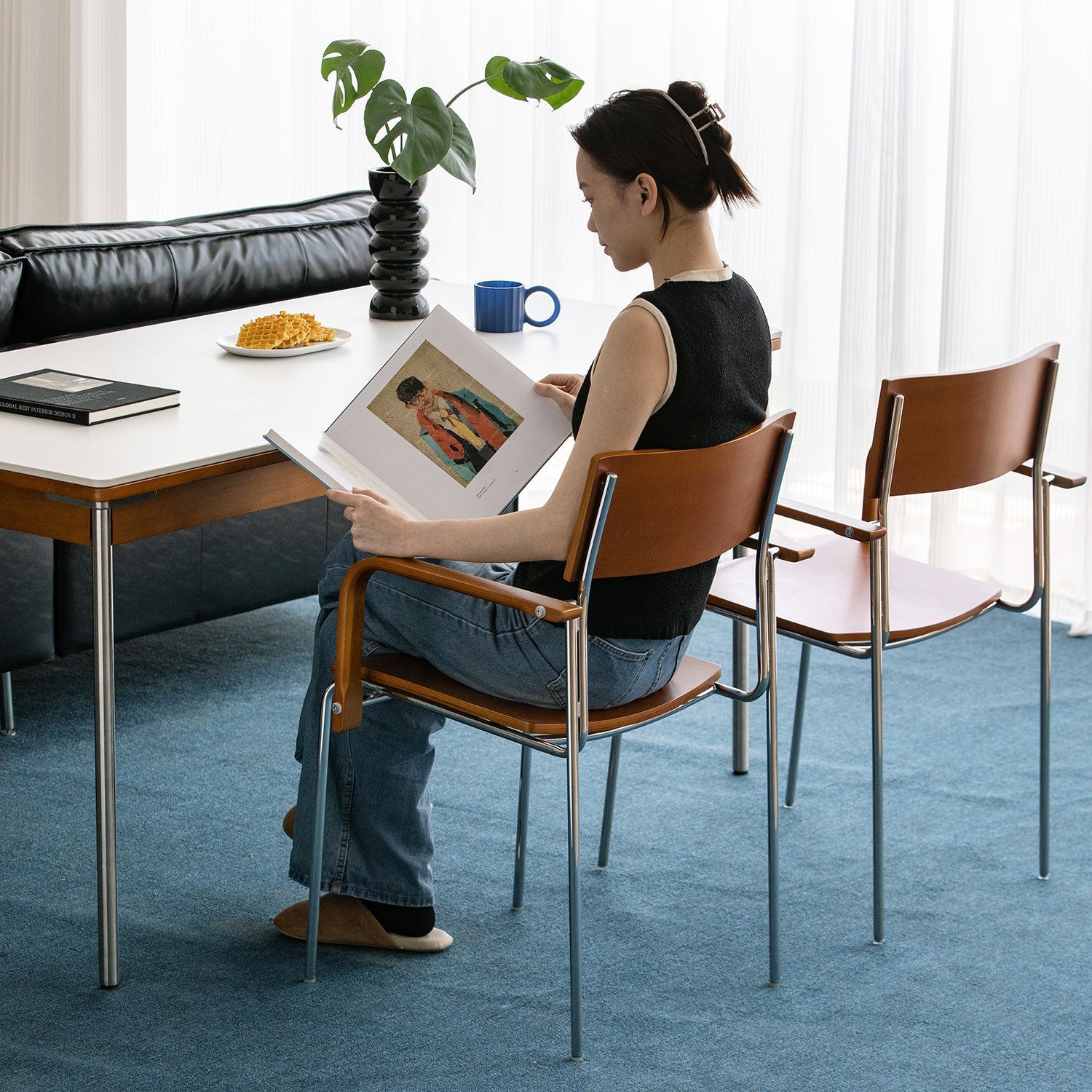 The 105° angled backrest follows natural body curves, providing lasting comfort for dining, reading, or long conversations.