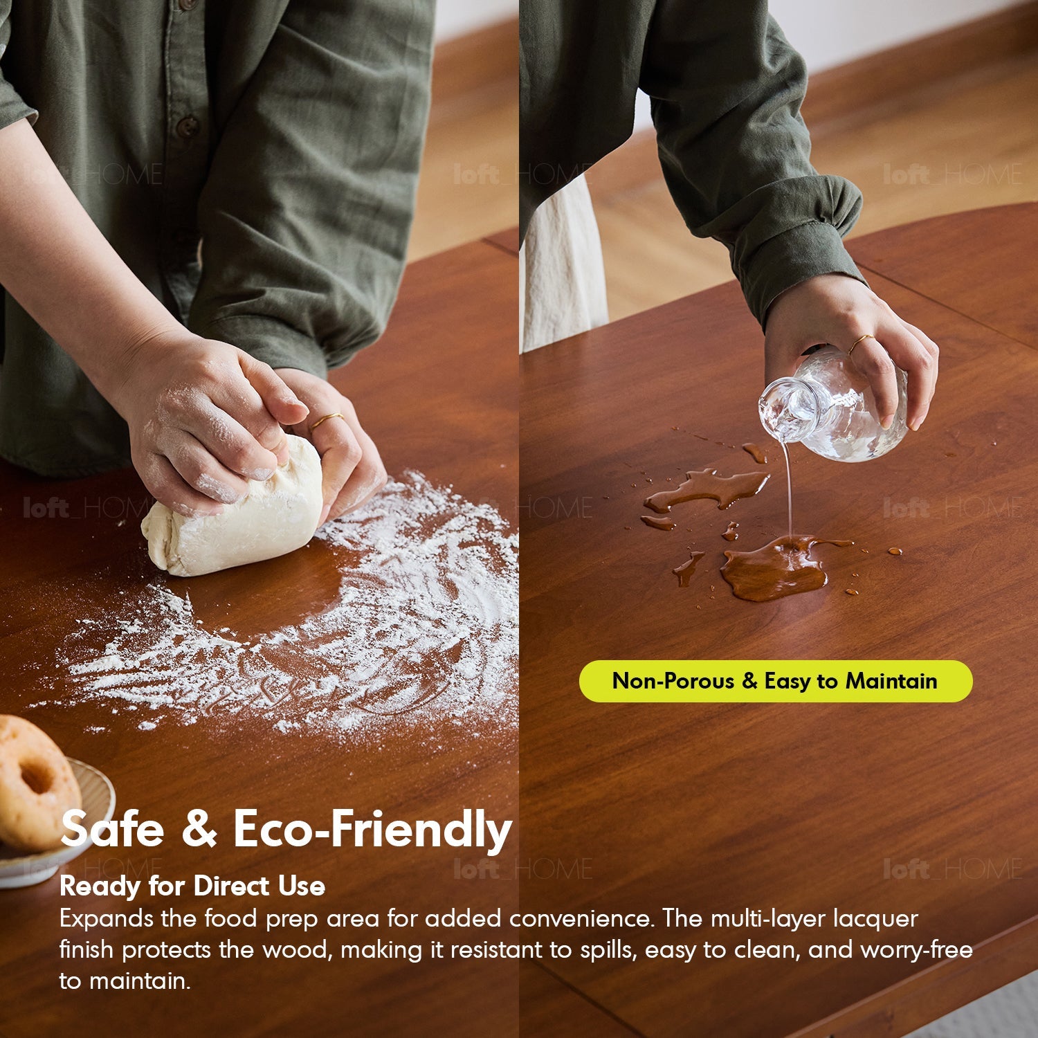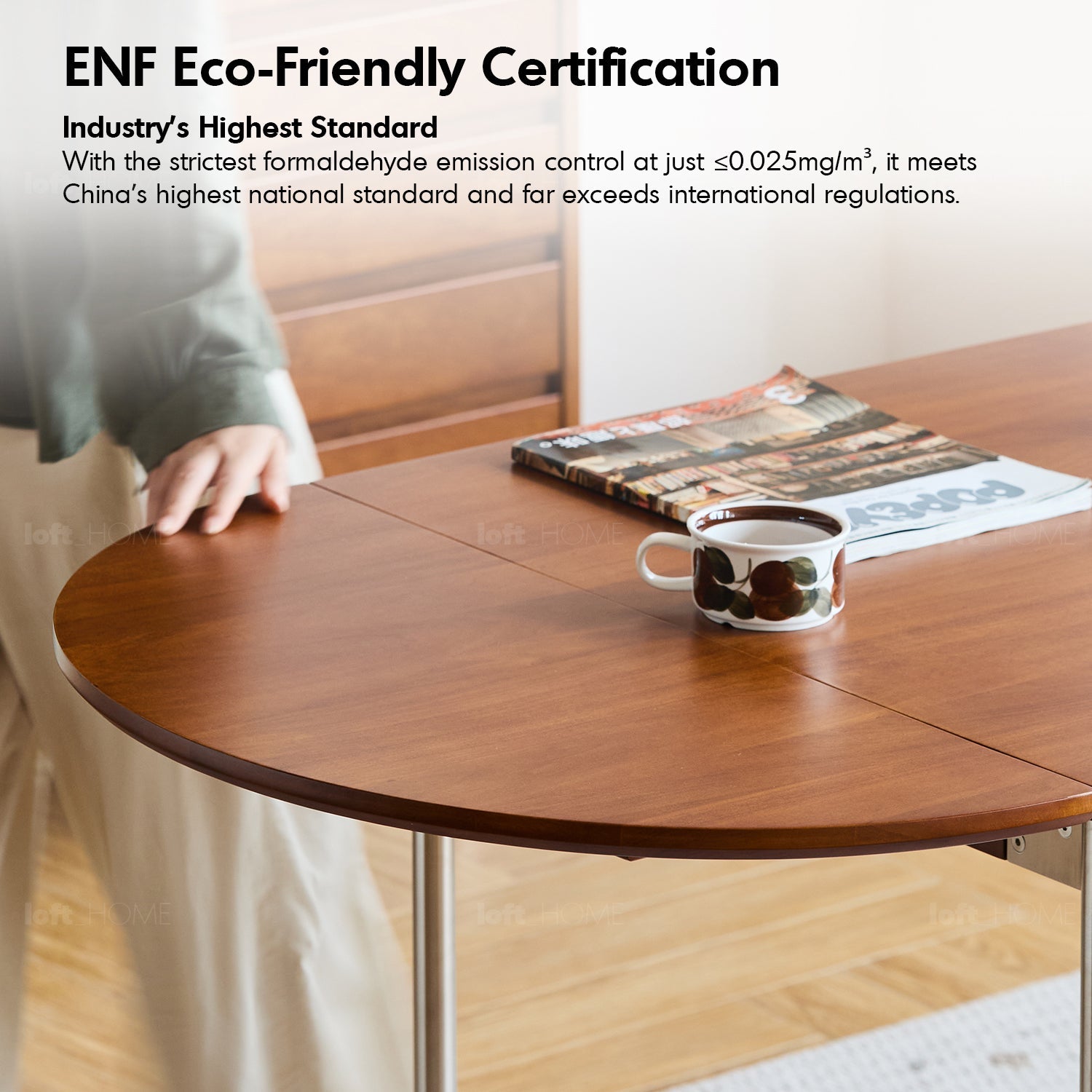 ENF-certified low-emission coating protects the wood, making it resistant to spills and easy to clean. |