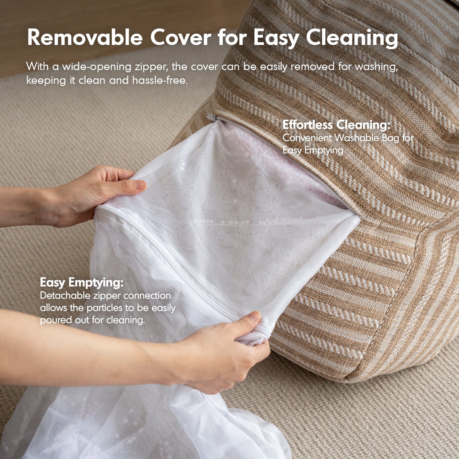 The wide-opening zipper allows easy removal for washing, keeping the ottoman fresh and clean. |