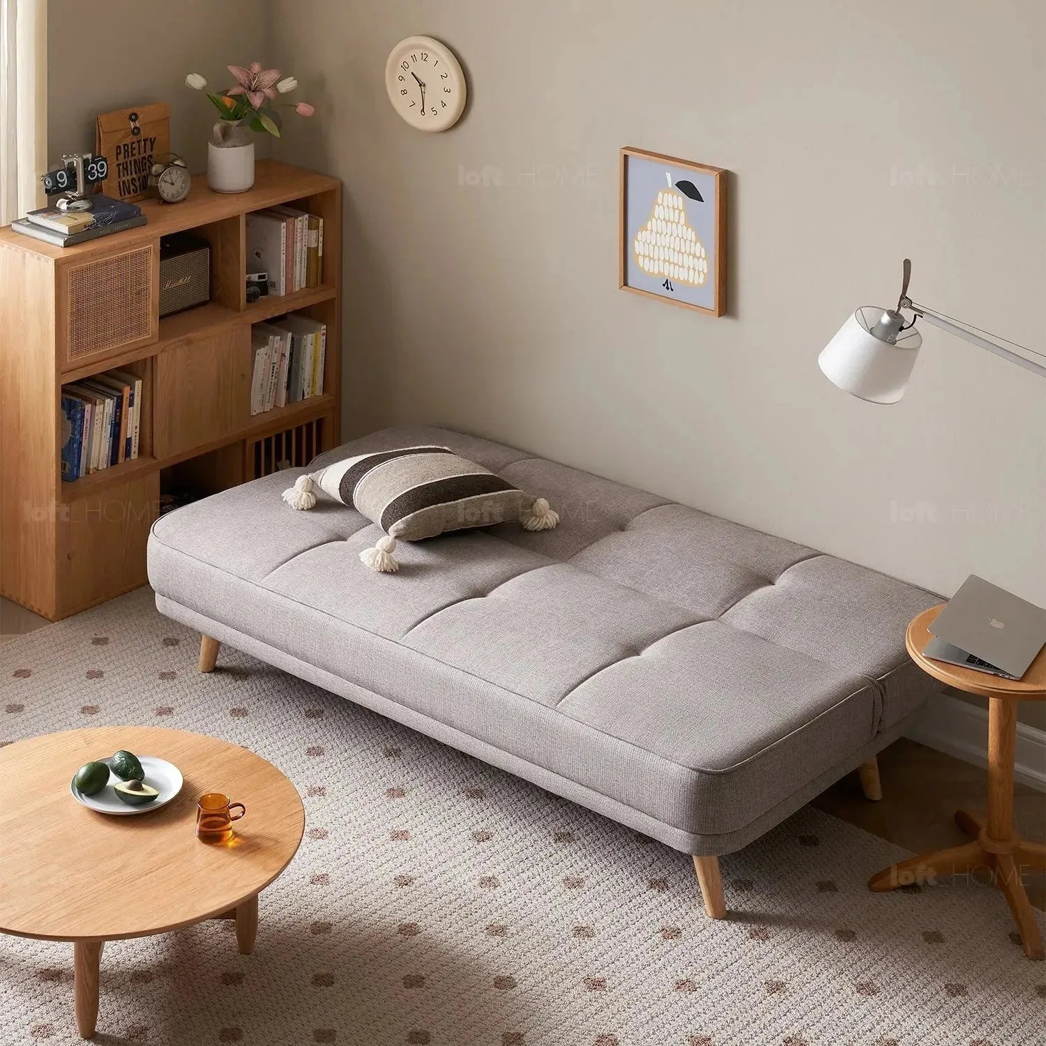 Transform your sofa into a bed with ease! Three-in-one design lets you lounge, sit, or snooze at home. Compact yet spacious, it's perfect for small spaces. No cramped corners here - fit for even the narrowest of living rooms. Soft yet sturdy, it's built to withstand the most thorough scrutiny. Made with a pine wood frame - even your furniture deserves a solid fou