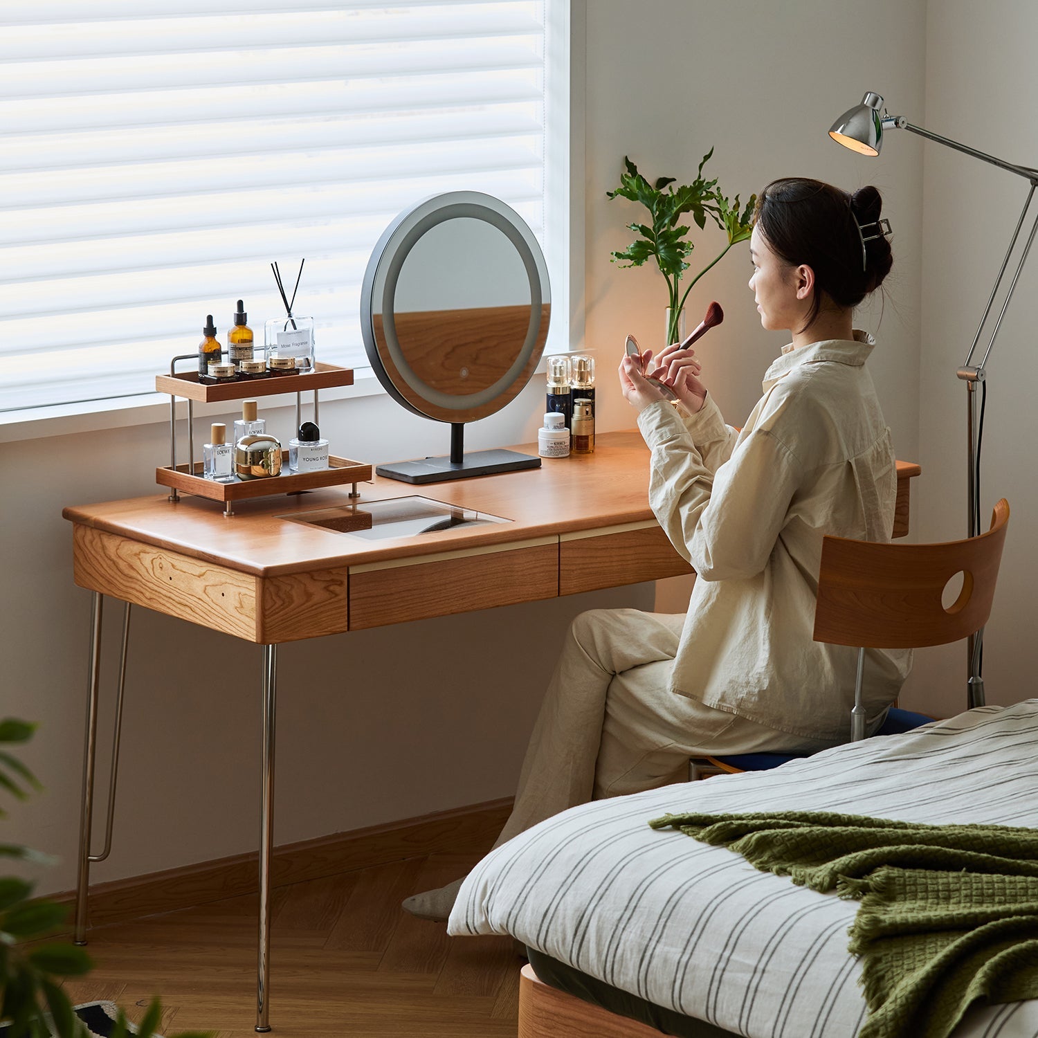 Modern Versatility Blends vintage charm with minimalist design, suitable for study, vanity, or reading corner across different interior styles.