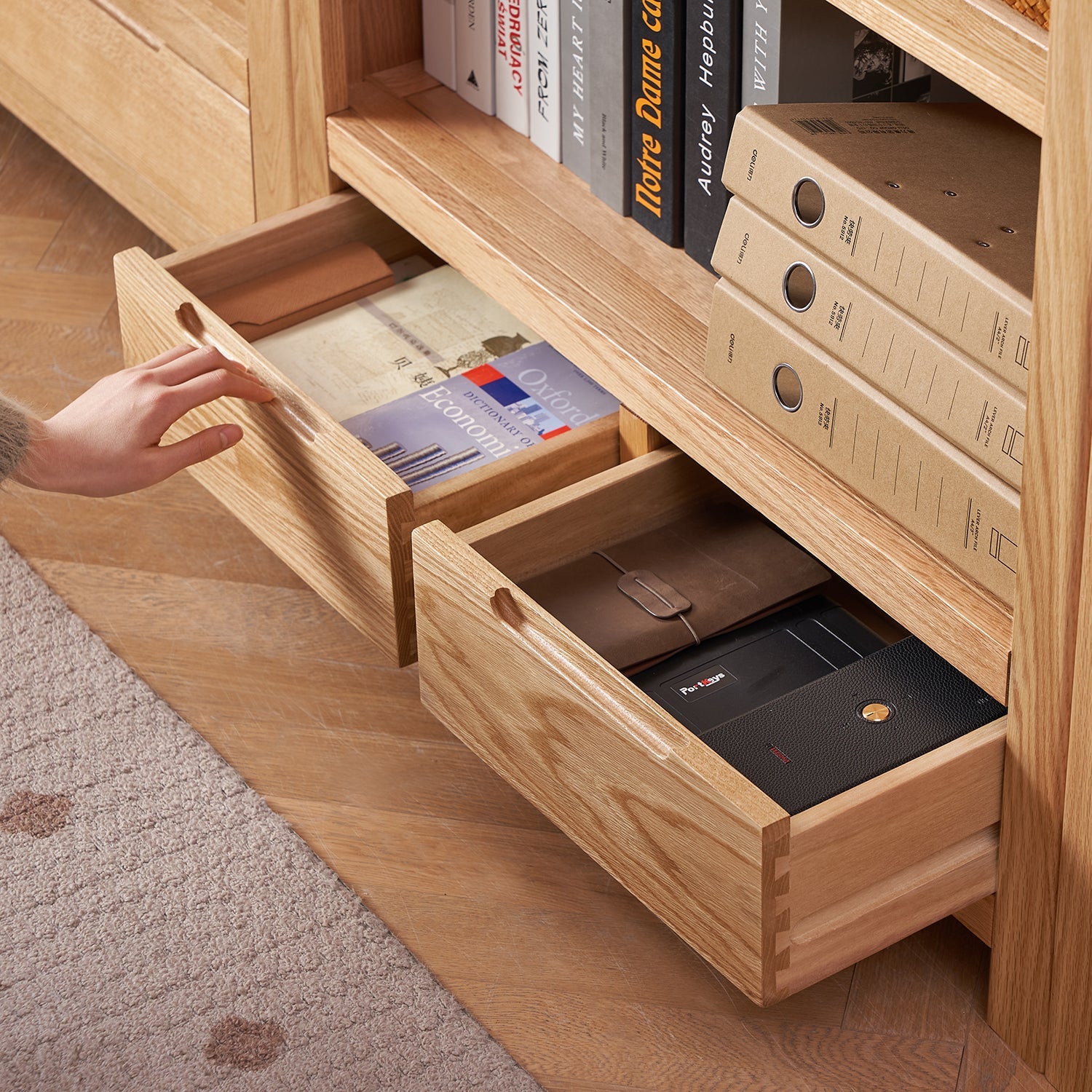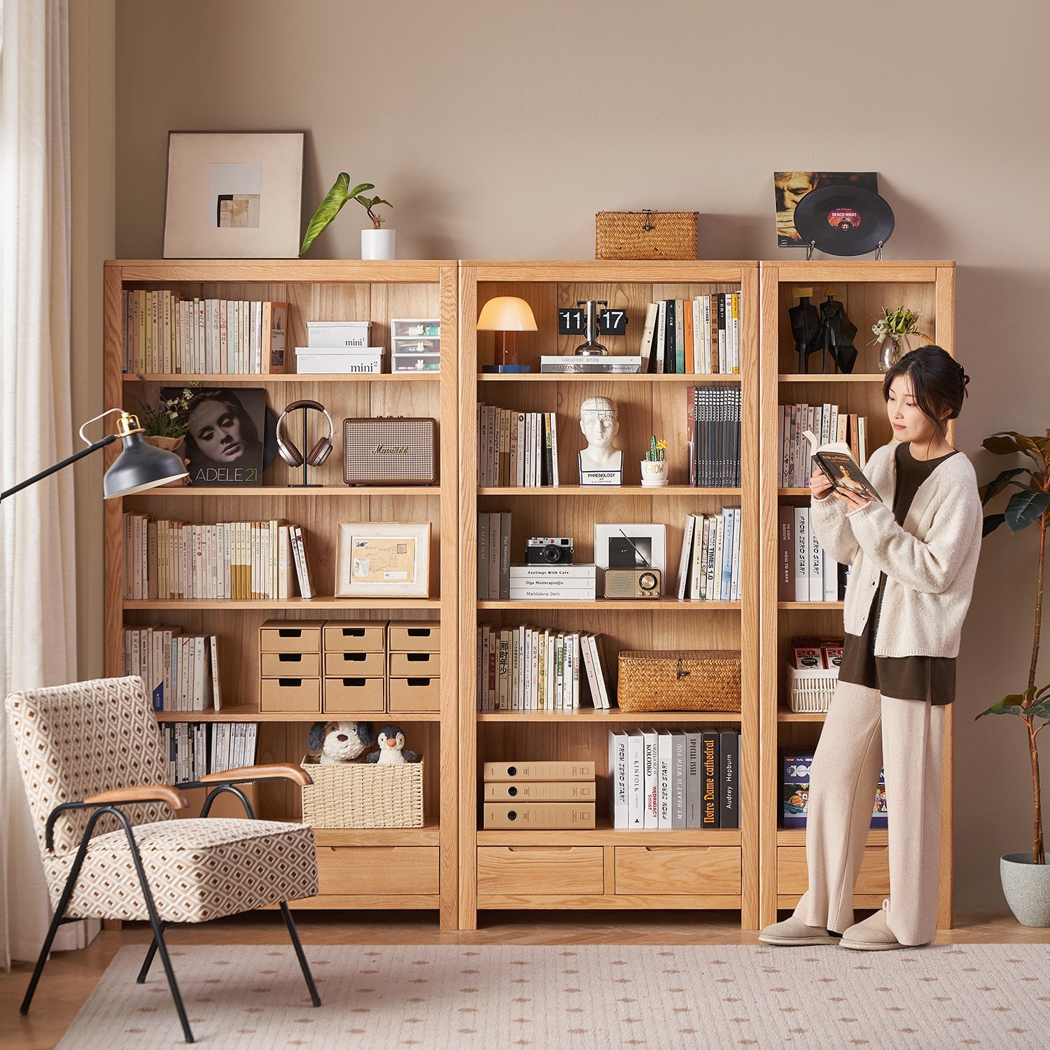 Scandinavian Oak Wood Bookshelf NORWAY combines durable oak wood and spacious shelves for stylish storage and display in modern interiors.