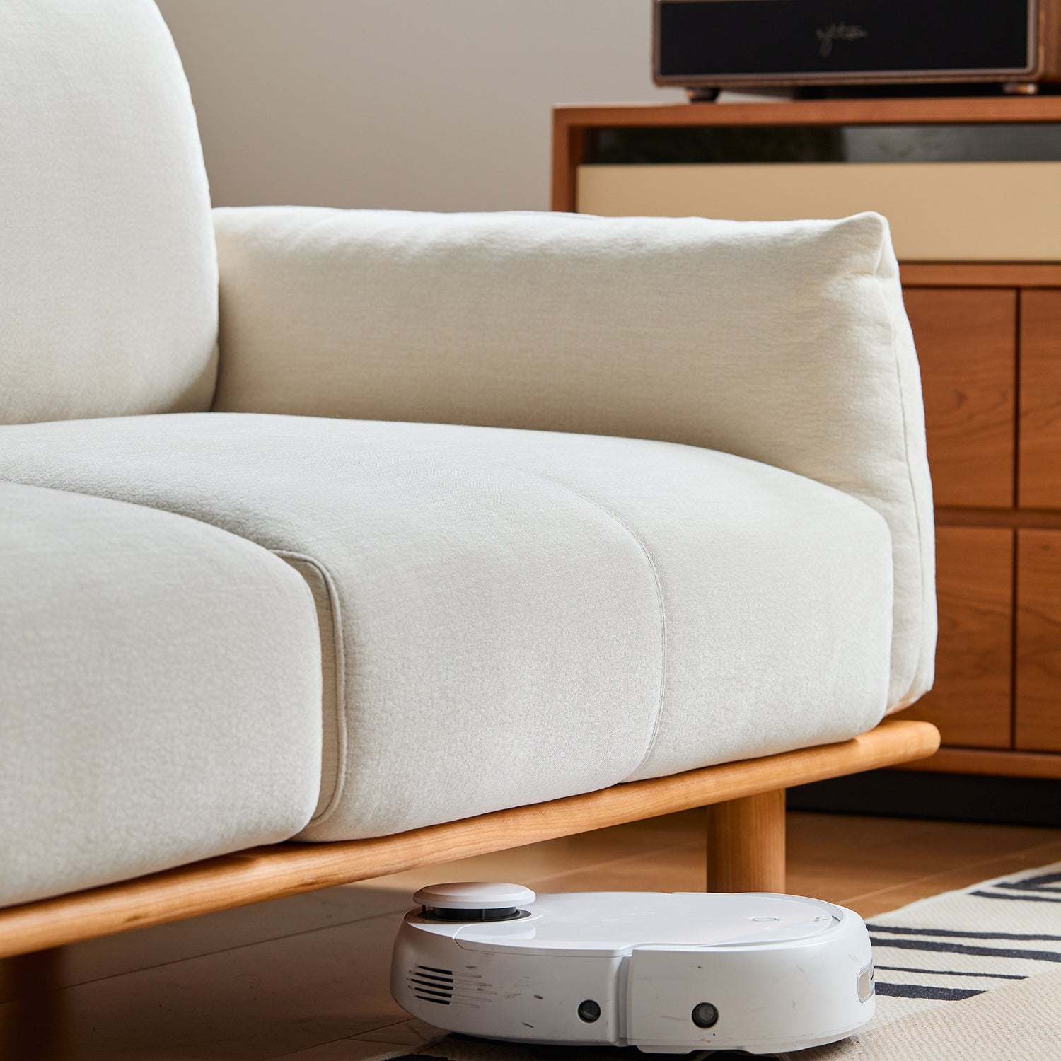 Solid Frame: Built with SUP North American cherry wood and reinforced pine plywood, the sofa frame is durable, stable, and safe for daily living. |