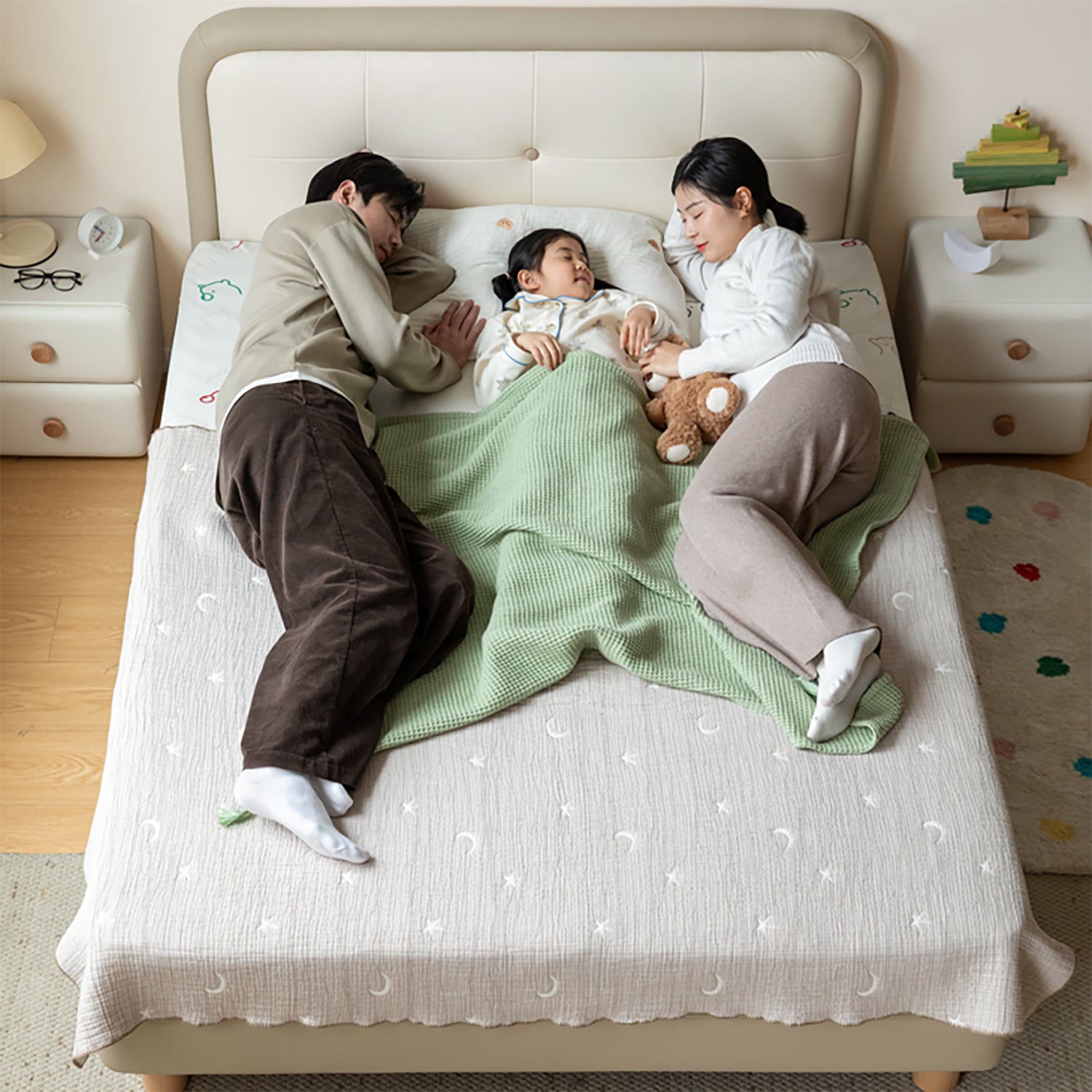 Thickened headboard and frame are filled with layered high density foam that provides strong support and fast rebound while protecting your child from bumps and offering comfortable back support. |