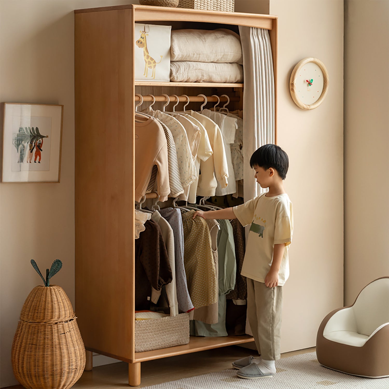 Scandinavian Beech Wood Wardrobe PEBLO