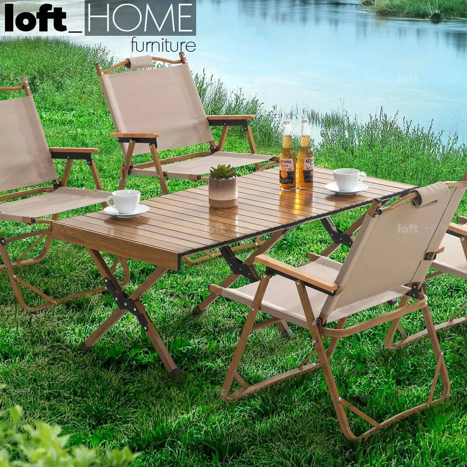 | Material: | Tabletop & Leg Aluminium, Nature-Inspired Woodgrain Finish (Water Resistant, Anti-Rust)