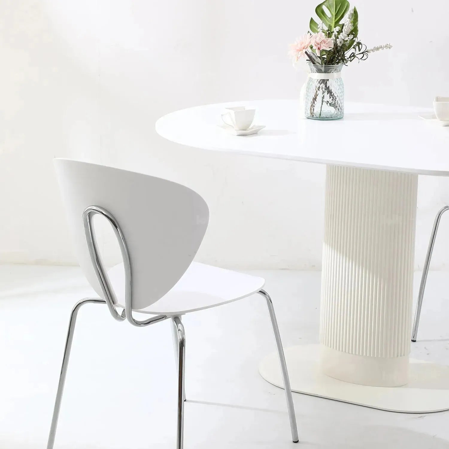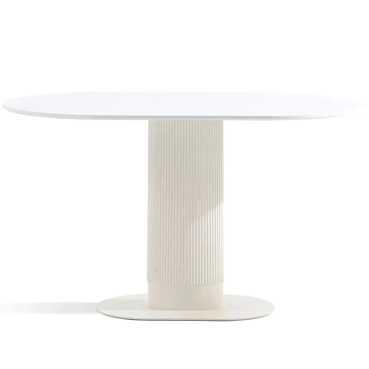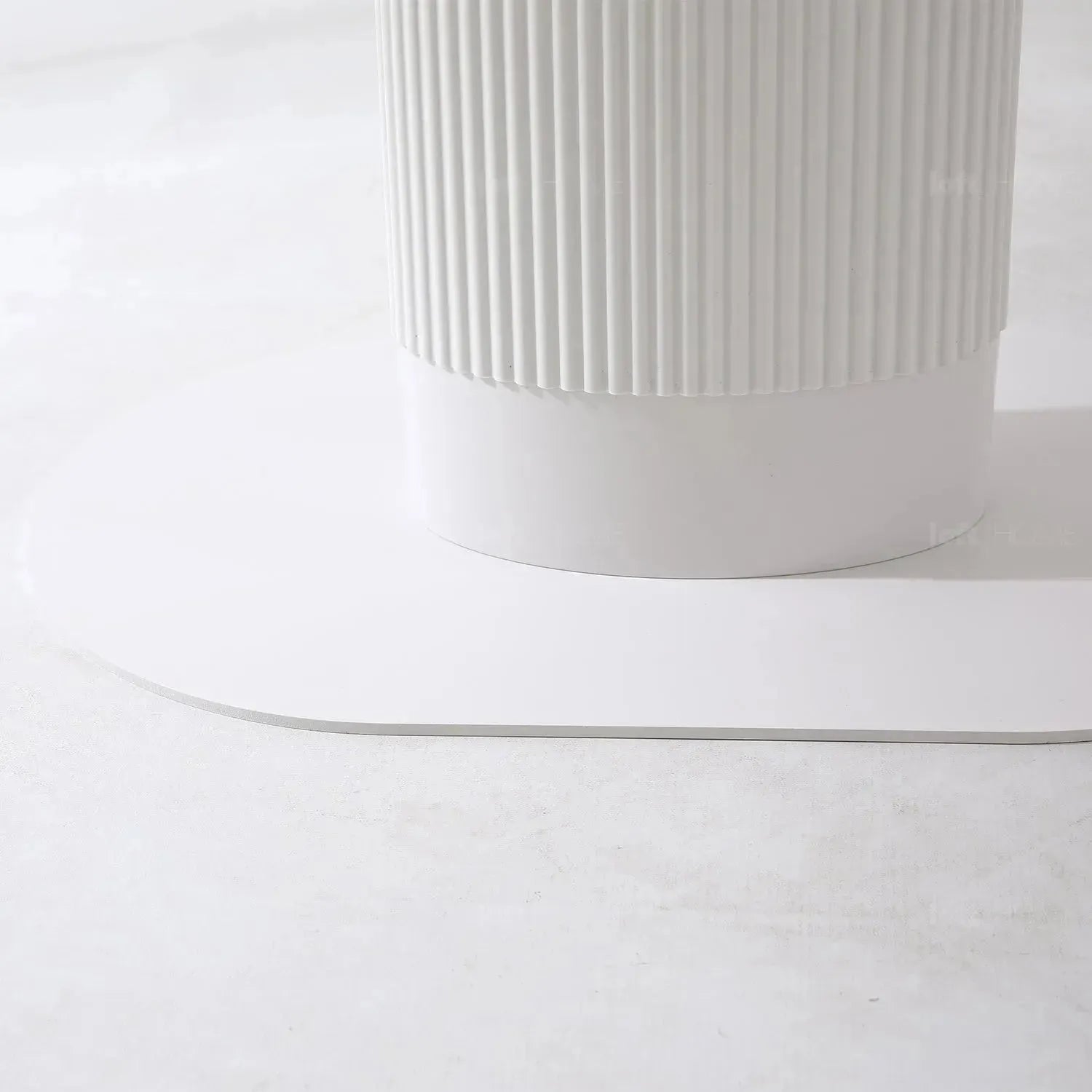 The flute panel design covering the ABS legs adds a stylish and modern touch to the table, enhancing its aesthetic appeal. Additionally, the metal base provides stability while complementing the table's overall design. |