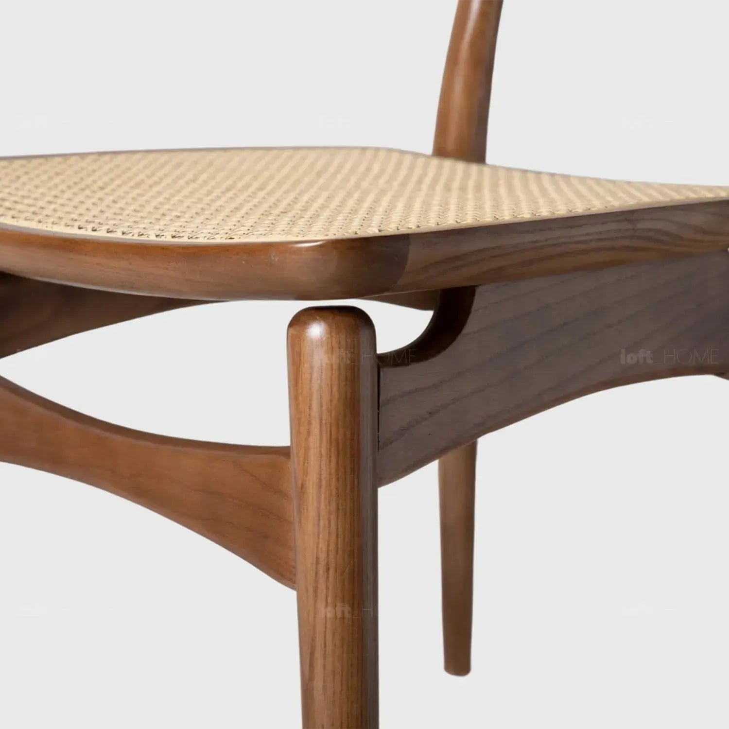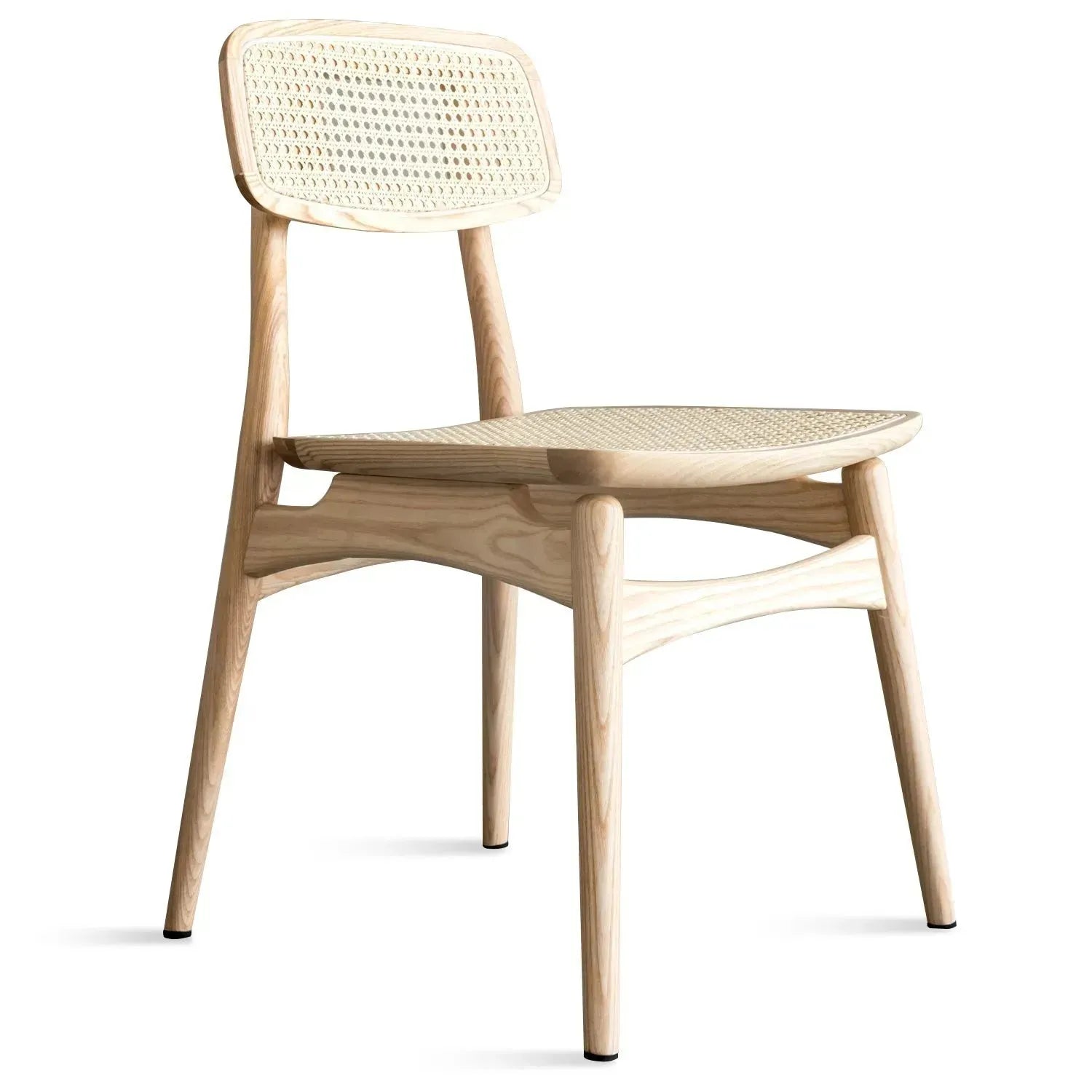 This Japandi Rattan Dining Chair is designed and imported from North America to elevate your dining experience. The hardwood's organic beauty radiates warmth, making it a timeless piece for any dining room. A clear, scratch-proof satin lacquer finish provides extra protection and a polished appearance.