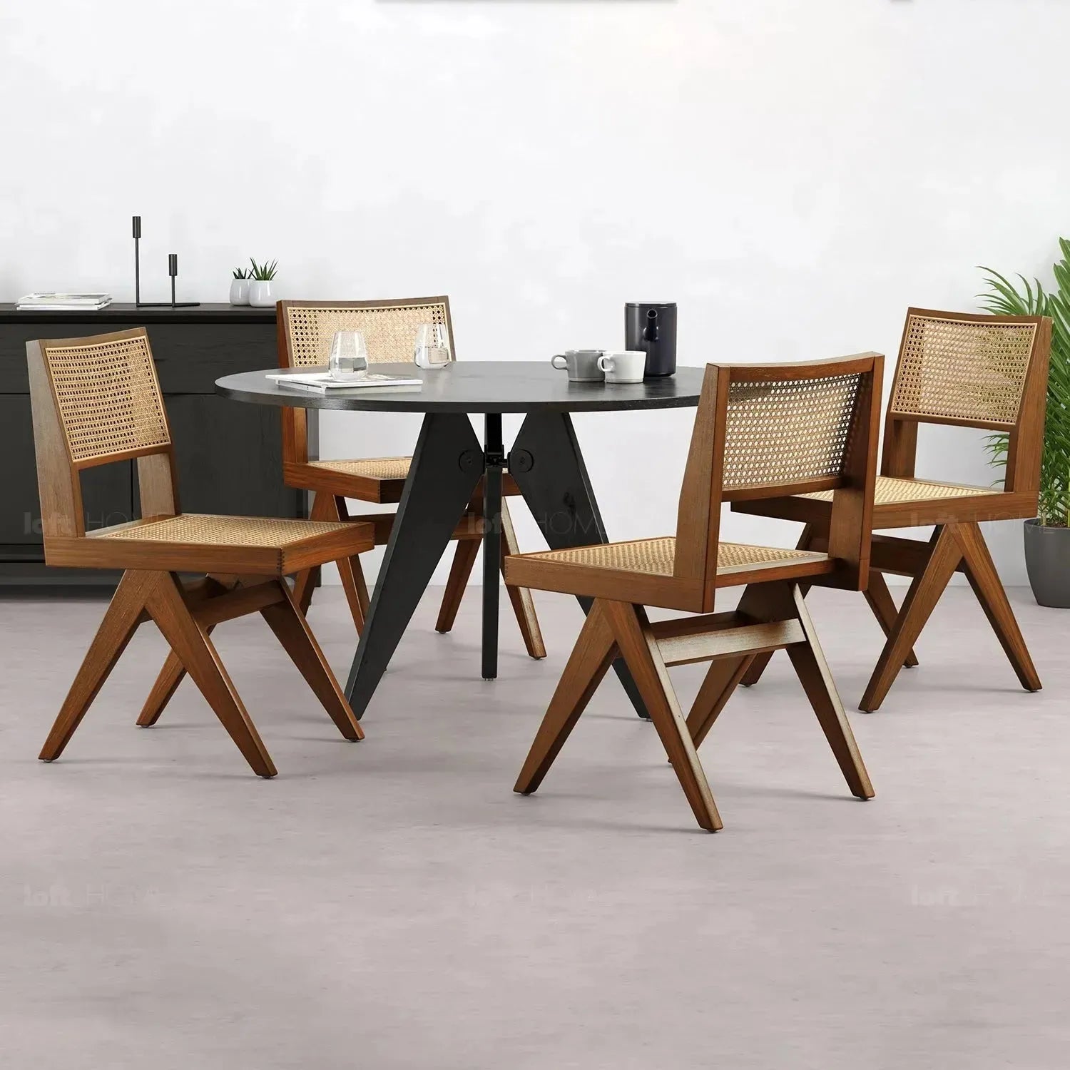 Appreciate the marriage of woodgrains and tones, as each piece is a personality unto itself, rendering every chair an artwork. |