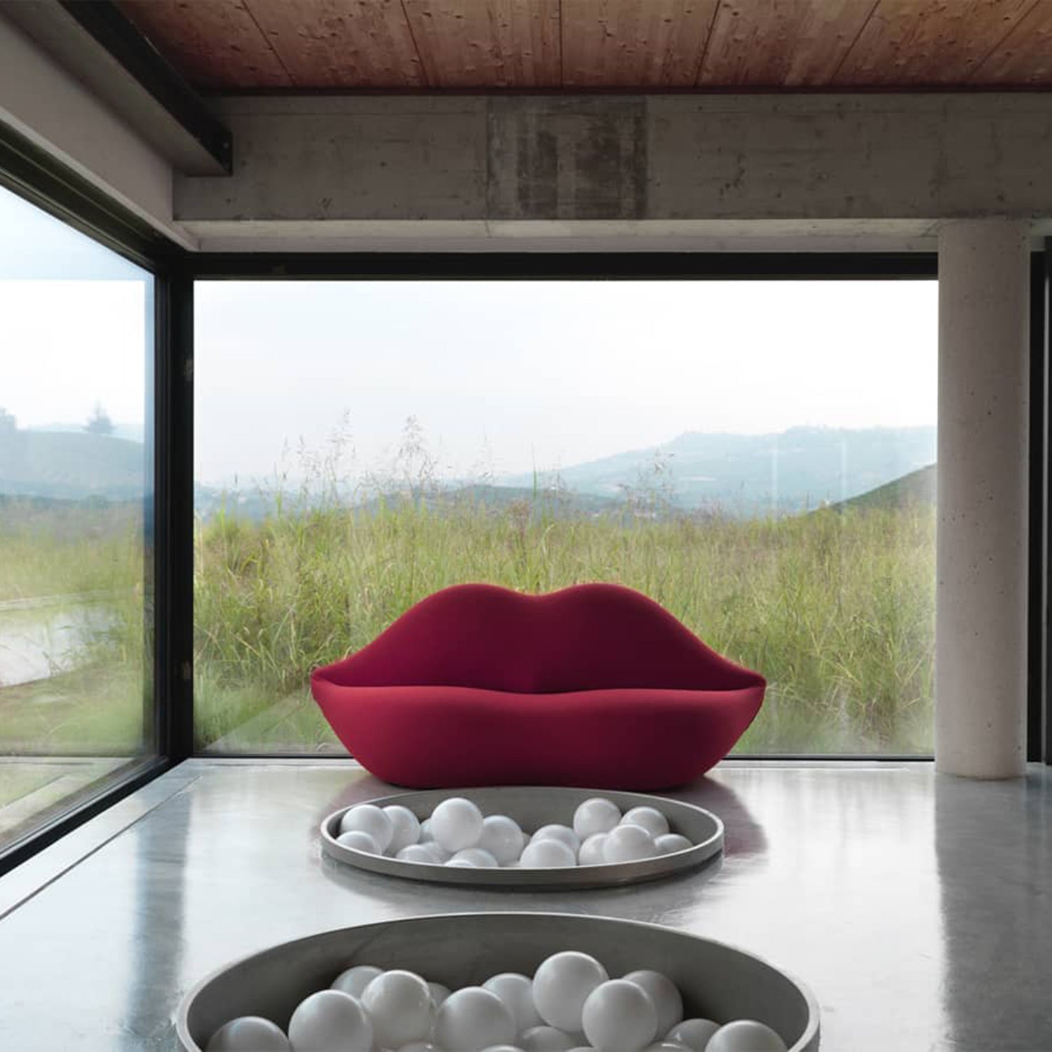 Contemporary Velvet 2 Seater Sofa BOCCA is a lips-shaped velvet sofa, loved by museums and designers fun, iconic, and full of personality.