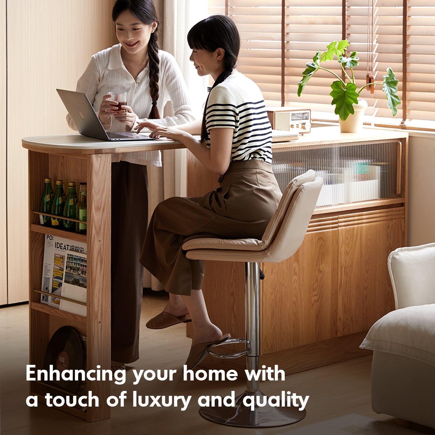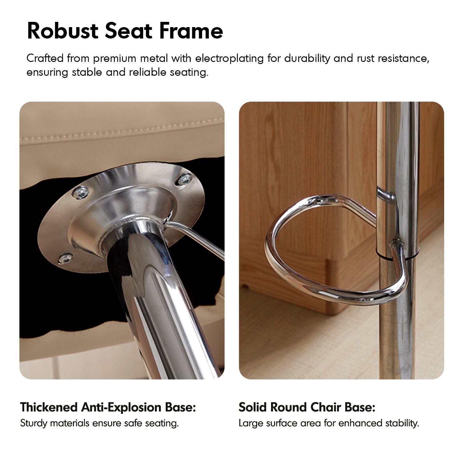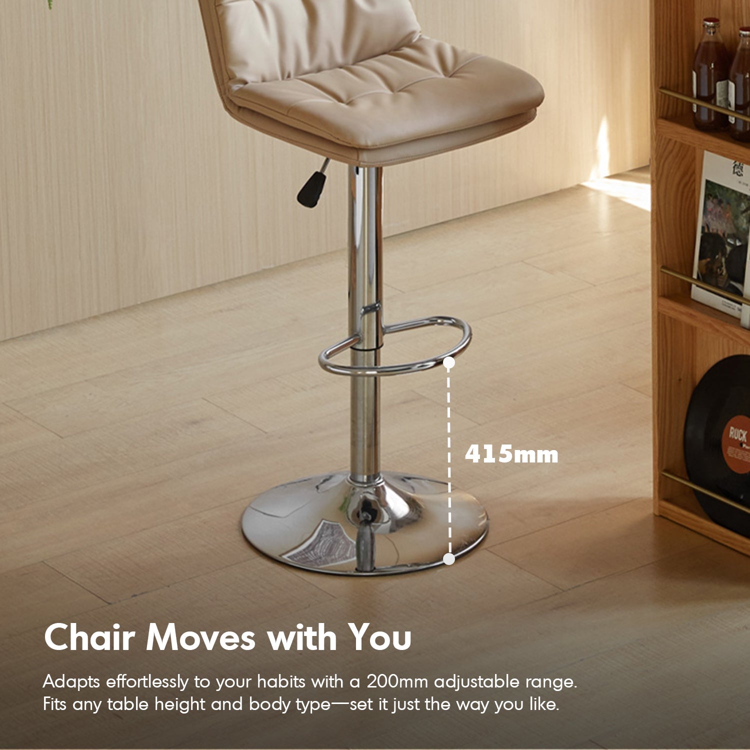 The Modern PU Leather Height Adjustable Revolving Bar Chair SPIN combines luxury and functionality for any space. Featuring a 200mm adjustable height range, 360° swiveling seat, and ergonomic lumbar support, it ensures personalized comfort. The double-layered cushion provides softness and durability, while the robust metal frame and thickened anti-explosion base offer stability and safety.