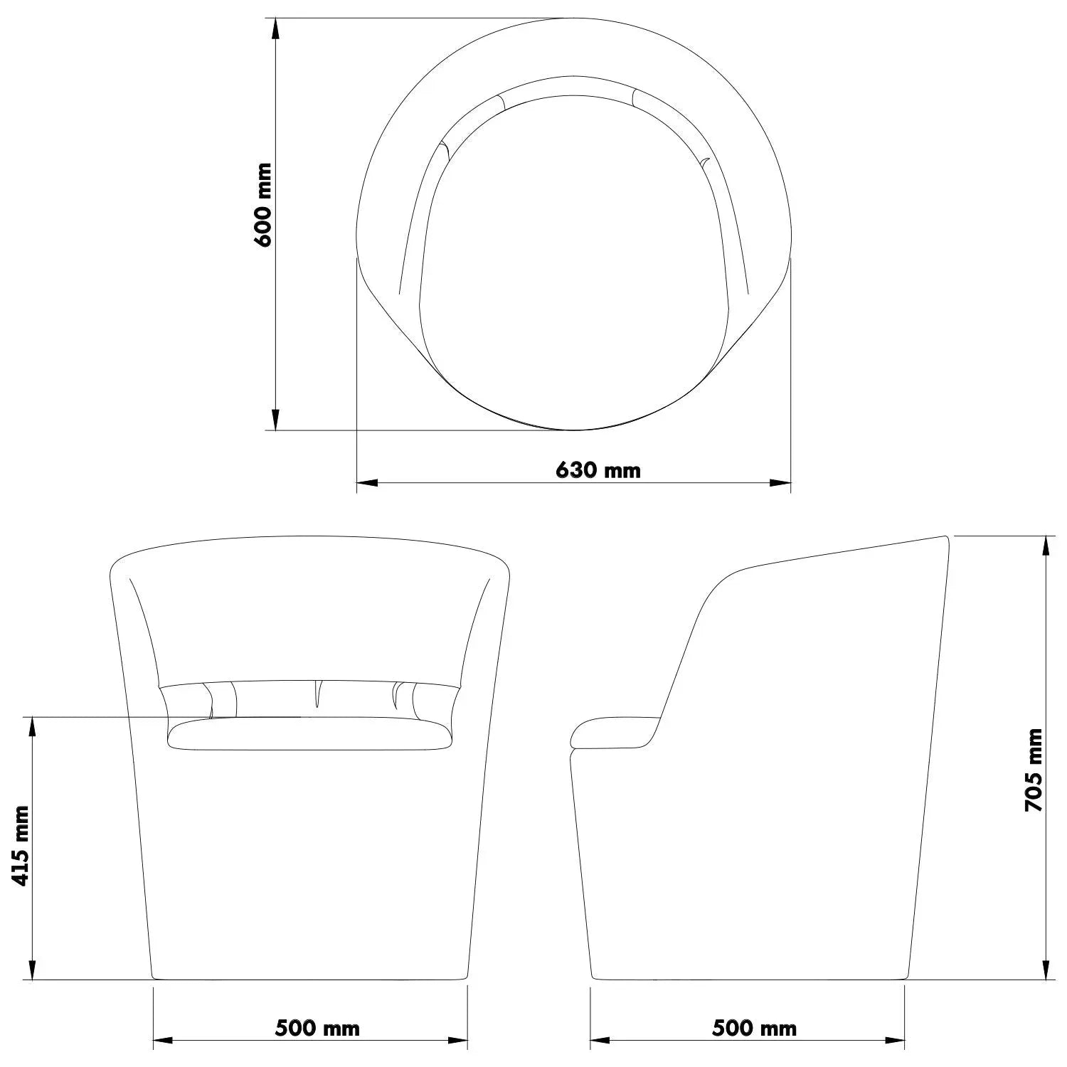L630 x W600 x H705mm |