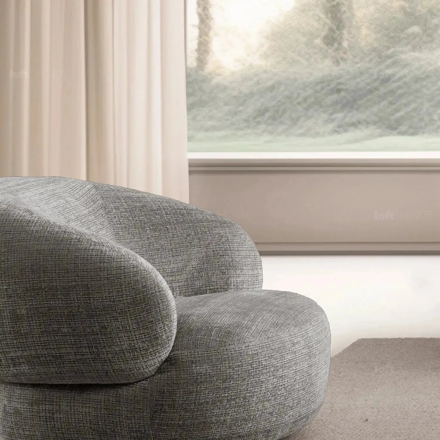 Elevate your living space with the Minimalist Mixed Weave Fabric Revolving 1 Seater Sofa CRIET. Featuring a beautifully rounded design and a durable larch wood frame, it boasts sophisticated mixed weave fabric and smooth rotation for effortless style and functionality. Enjoy premium cushioning for optimal comfort, supported by a sturdy and stylish base, making it a versatile and elegant addition to any room.