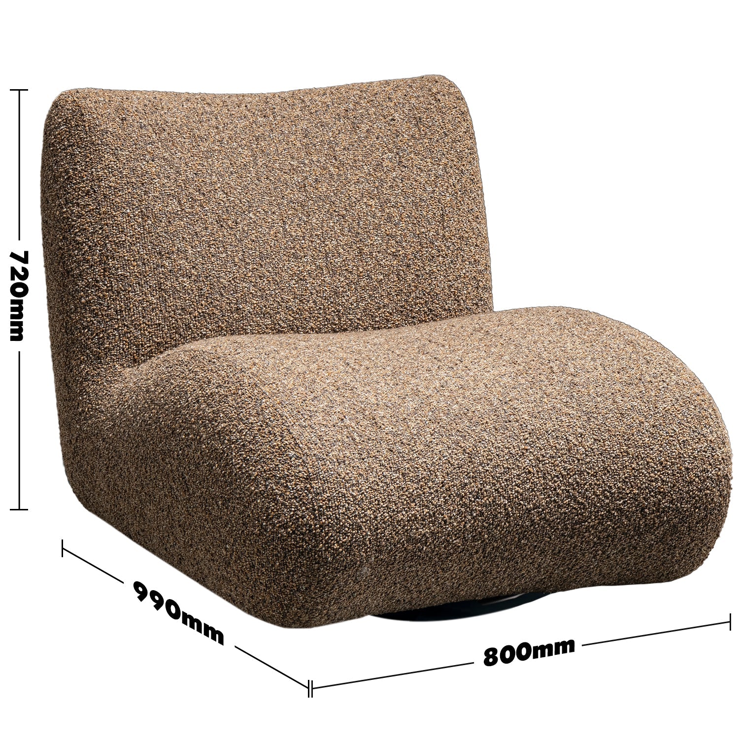 Elevate your space with the Modern Boucle Fabric 1-Seater Sofa POD. Its sleek, minimalist design and plush high-density foam filling offer both style and exceptional comfort. This chair has a durable, powder-coated carbon steel revolving base, which allows for 360-degree flexibility, perfect for modern living spaces. Wrapped in a luxurious brown boucle fabric, it effortlessly combines elegance and functionality, making a refined statement in any setting.