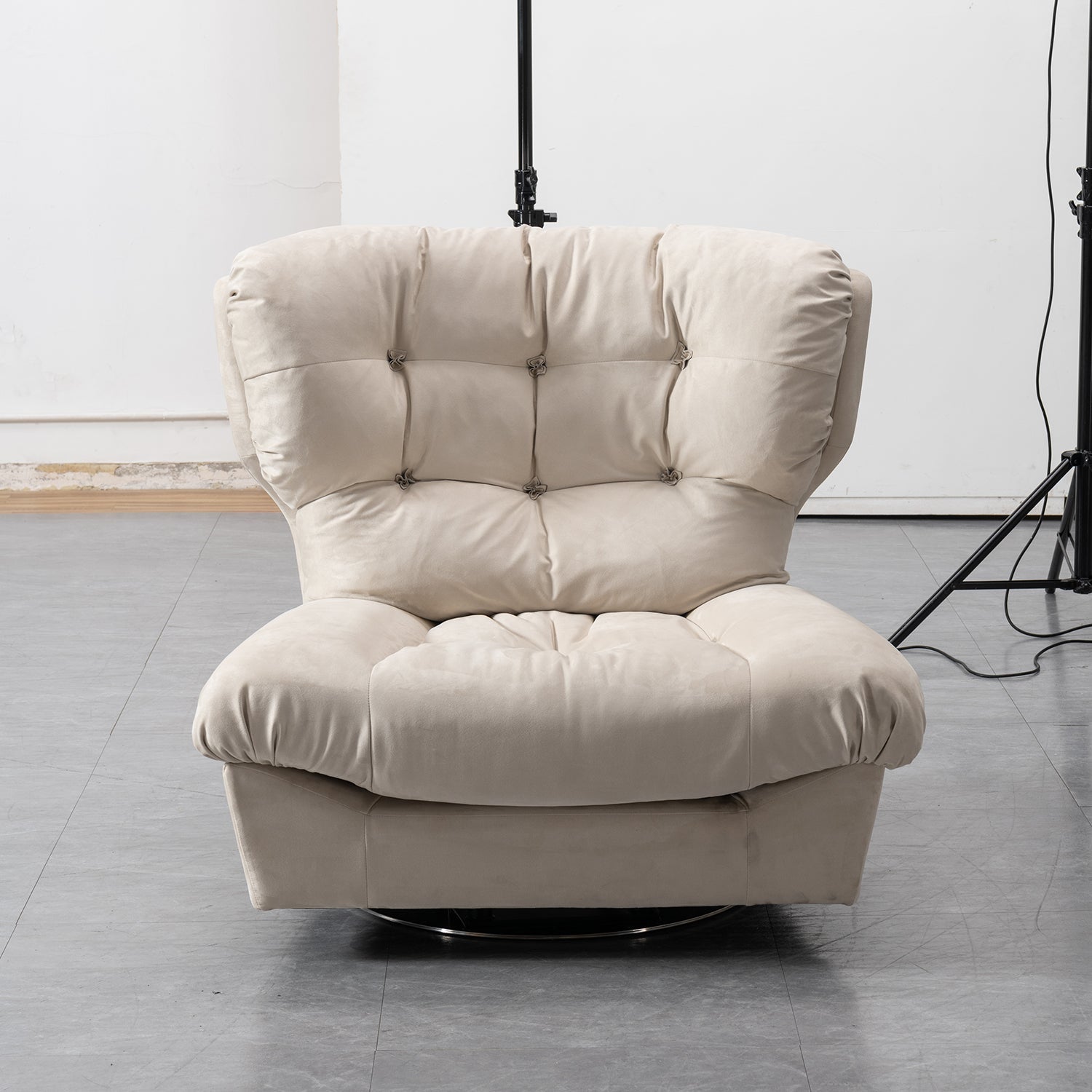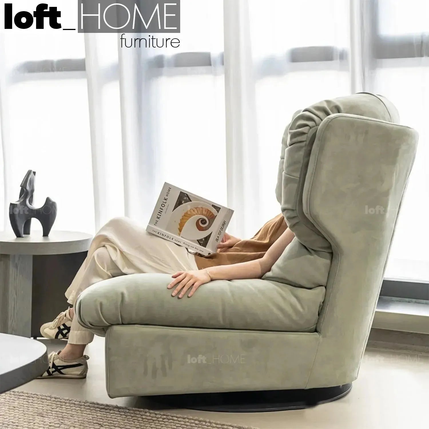 Add a touch of elegance and comfort to your living space with this Minimalist Suede Fabric Revolving 1 Seater Sofa The 45D High Density Foam and feather filling make it possible to enjoy both softness and support while relaxing on it.