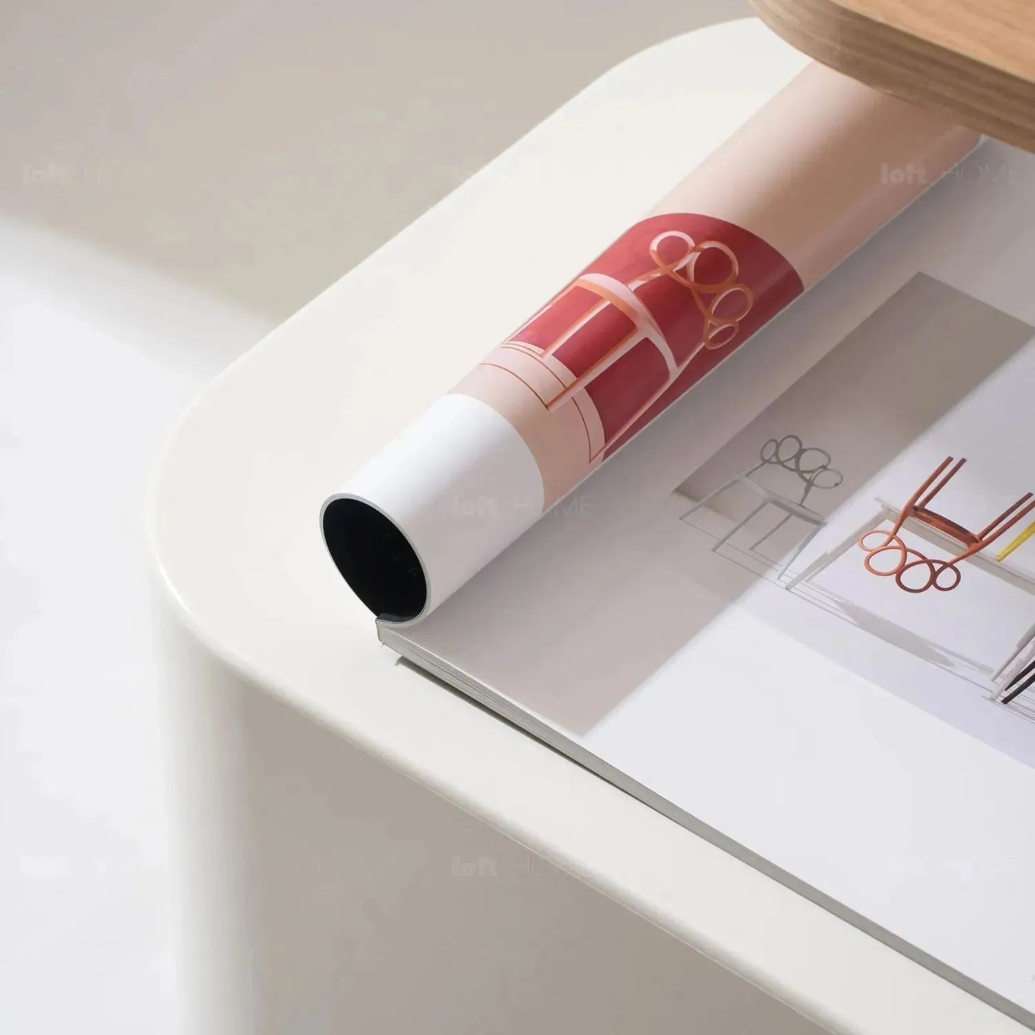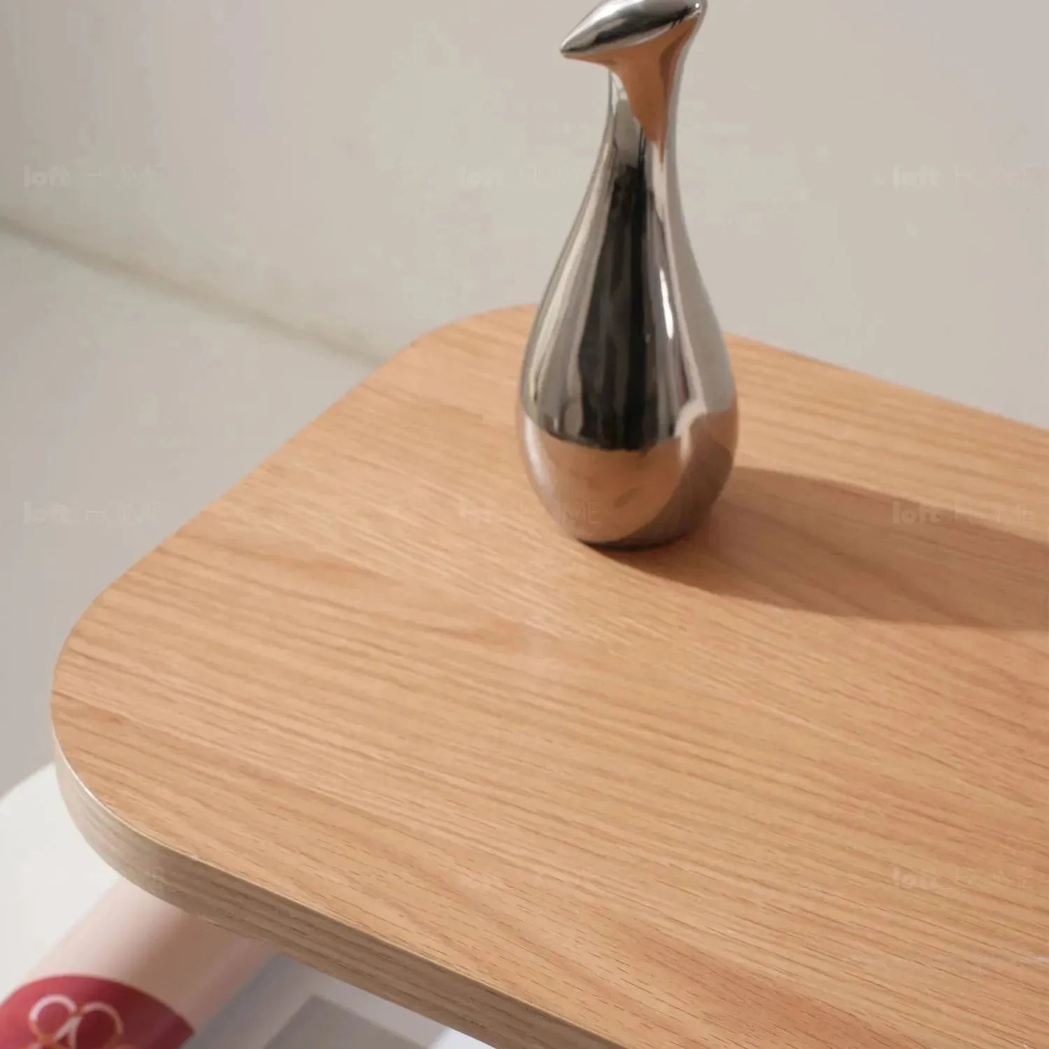 The small table top made with MDF with oak veneer exudes a sophisticated and elegant look, while the cream-colored ABS base adds a touch of modernity to any space. |