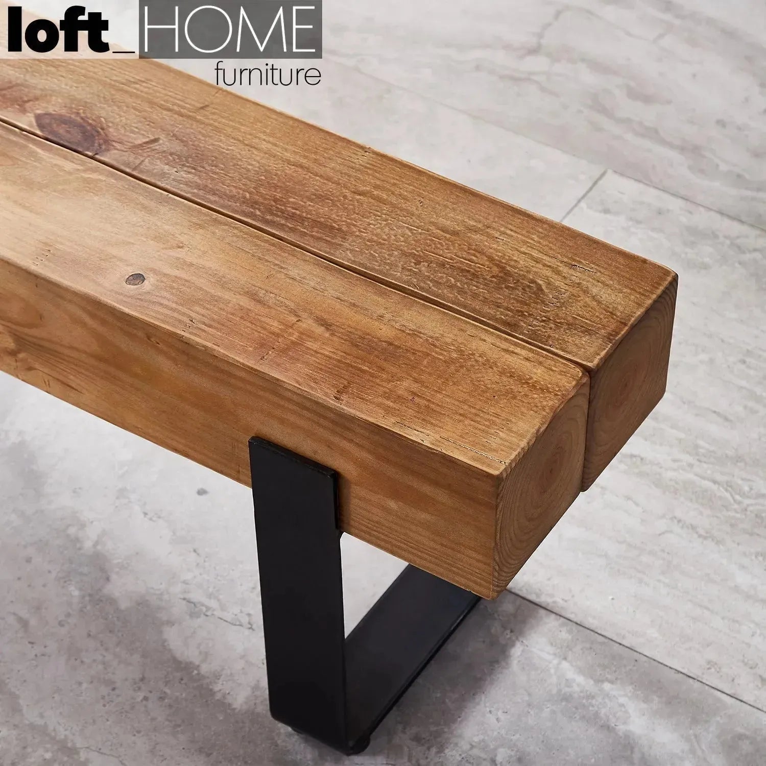| Material: | Solid wood bench top with matt black powder coated steel legs. |