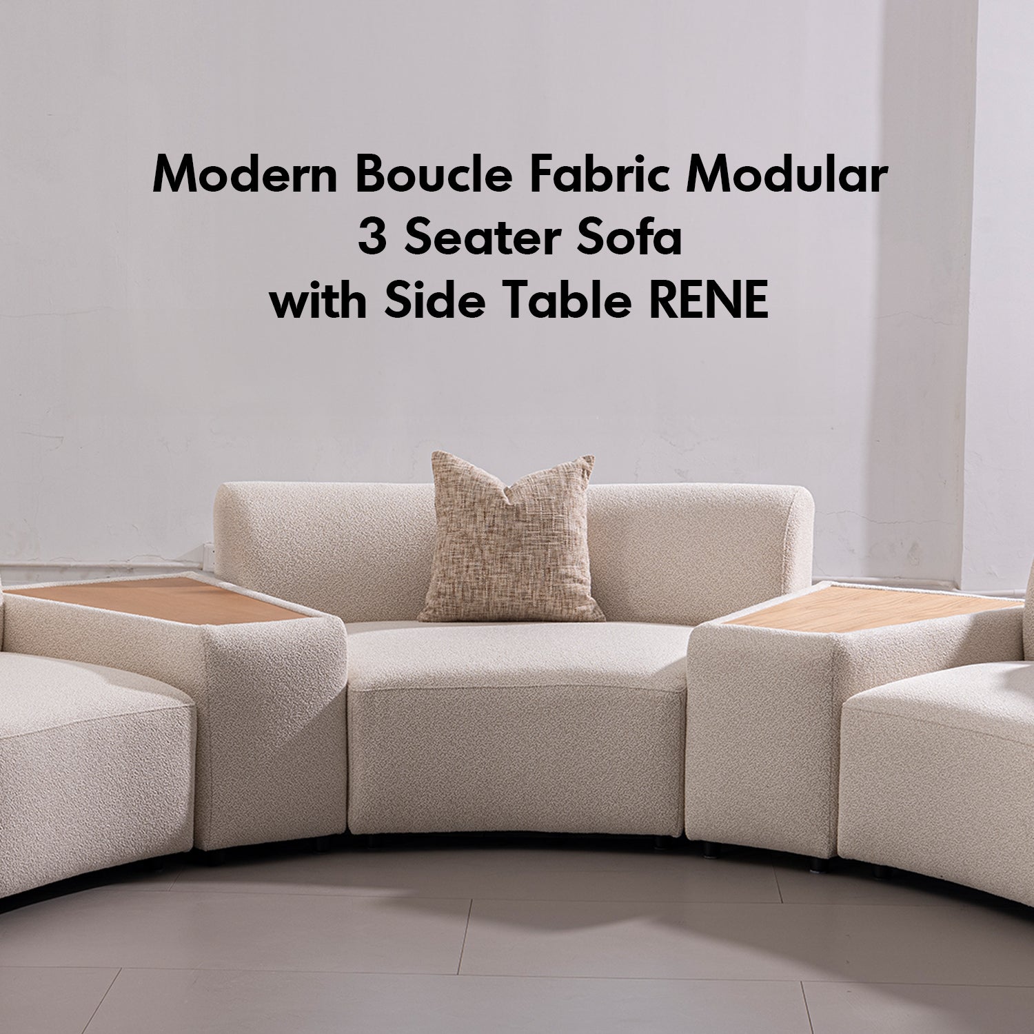 The Modern Boucle Fabric Modular Joint Connection 1 Seater Sofa RENE combines luxurious comfort with a versatile design. Crafted with a solid Russian larch wood frame and upholstered in premium white boucle fabric, it offers both durability and style. The high-density foam ensures exceptional comfort, while its modular flexibility allows for endless configurations to suit any space, making it the ideal choice for modern interiors.