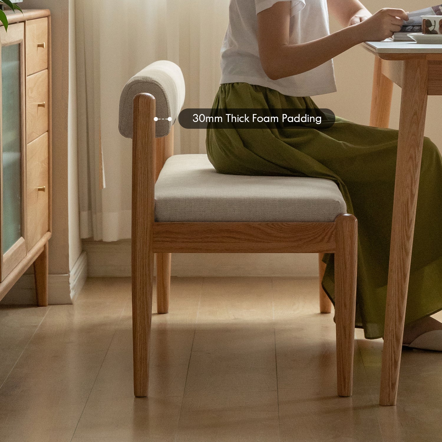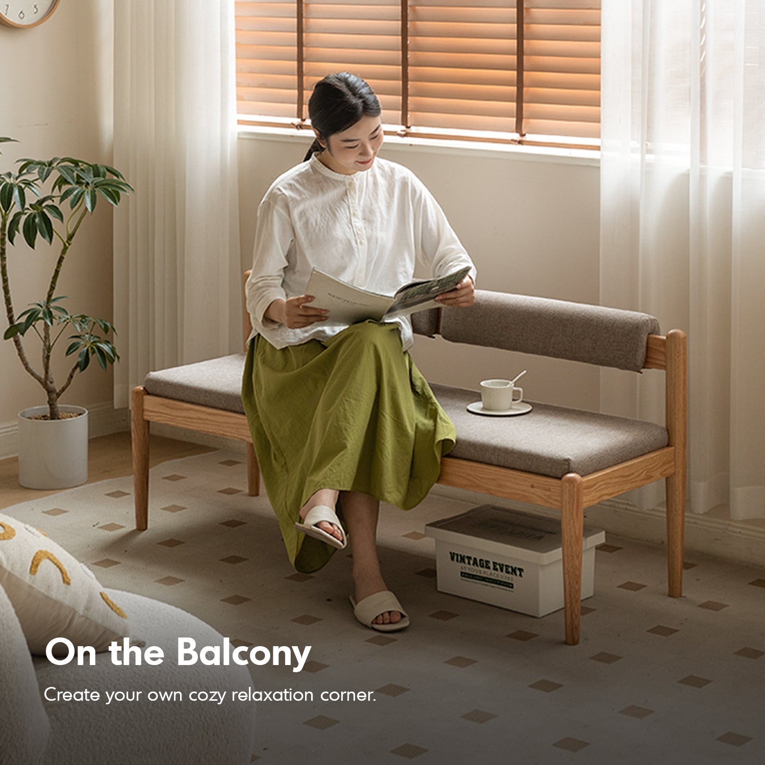 The Scandinavian Oak Wood Mixed Weave Fabric Dining Bench PILLAR combines versatility, comfort, and timeless craftsmanship. Crafted from 100% solid FAS-grade oak, it features a spacious, high-resilience foam seat and upholstered backrest for exceptional support and relaxation. With a 420mm seat height and carefully polished edges, it's safe, sturdy, and family-friendly. The removable upholstery allows effortless cleaning, while the minimalist design fits seamlessly into dining rooms, entryways, or balconies.