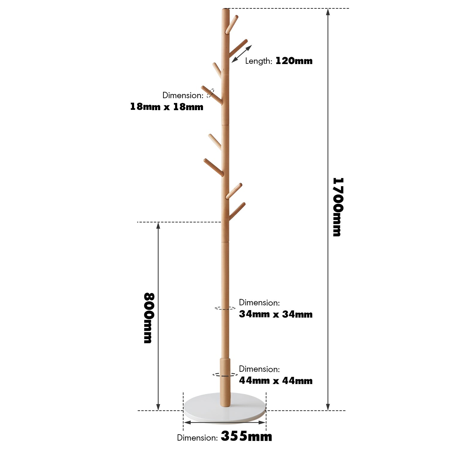 - L355 x W355 x H1700mm