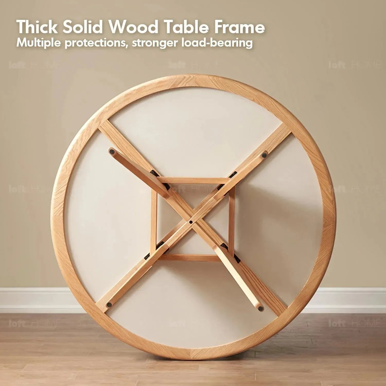 Distinguished from typical dining tables on the market, featuring widened and thickened legs with solid materials, ensuring minimal wobbling of the tabletop. Cross-bracing Support in the Middle of the Legs The cross-bracing support stabilizes the legs while providing an aesthetically pleasing design, ensuring solid support for the tabletop. |
