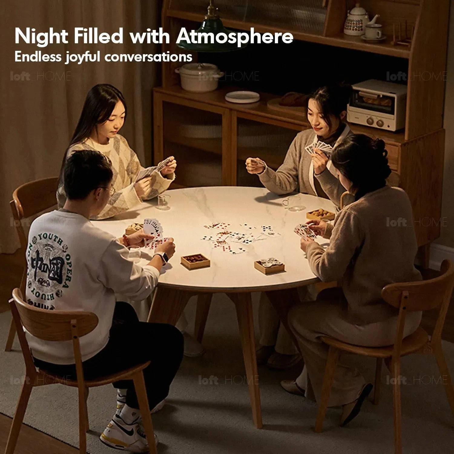 Round table design allows for flexible chair placement, comfortably seating 6-8 people for family gatherings. Paired with the turntable, providing a perfect 300MM width for dining around, leaving ample space for tableware without crowding. |