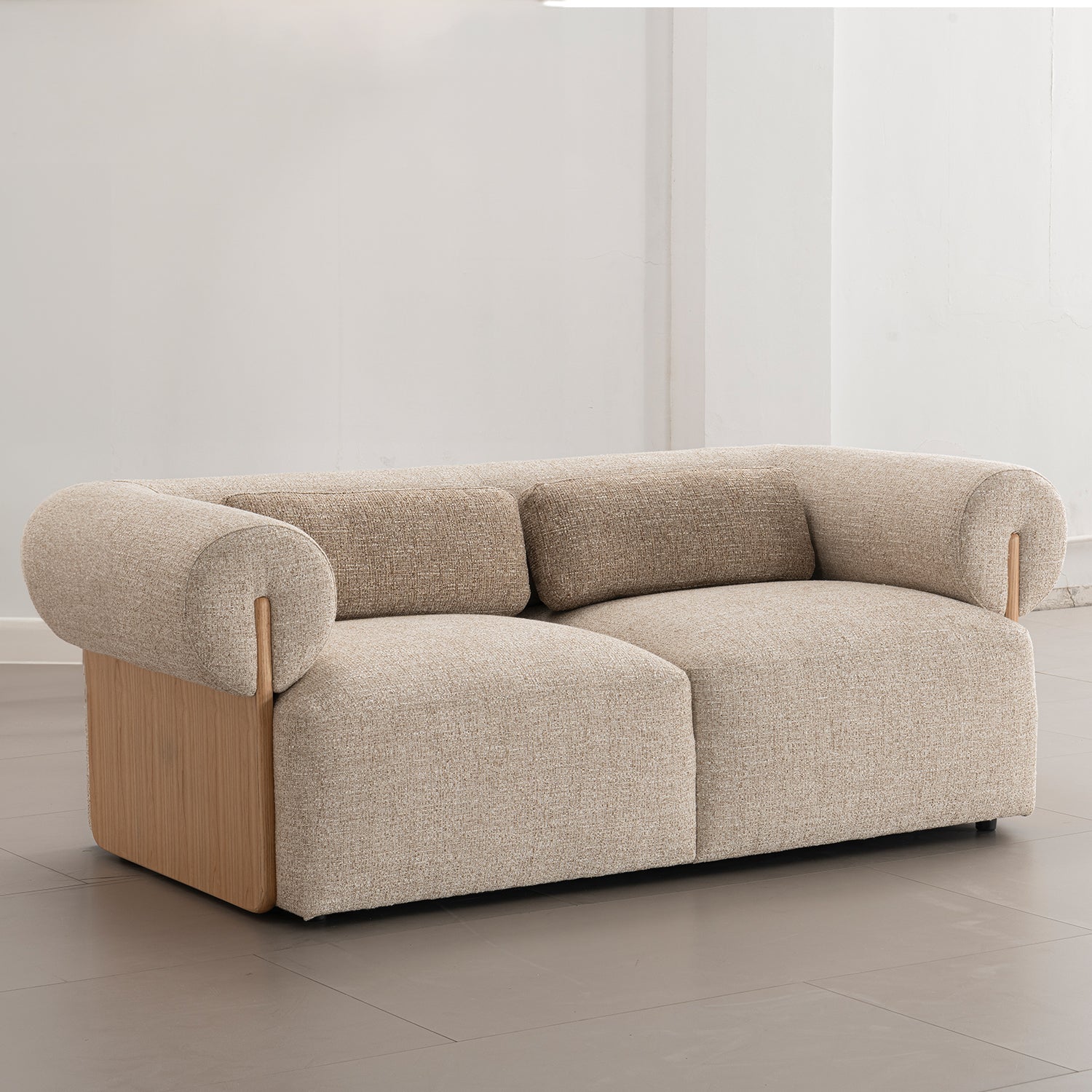 The Scandinavian Mixed Weave Fabric 2 Seater Sofa LANGE offers an exquisite blend of style and comfort. With its solid Ash Veneer frame, pine wood legs, and premium mixed-weave fabric, this piece exudes timeless elegance. High-density foam and fiber filling ensure optimal comfort, while the minimalist design aligns with modern interiors, making it a stunning addition to any home.