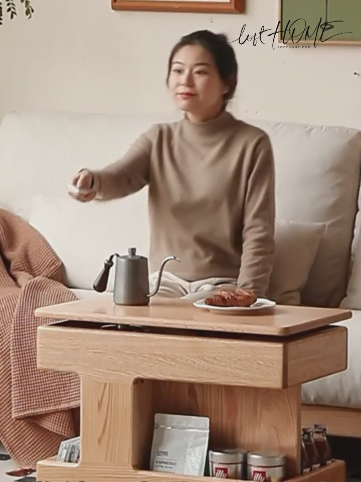 Scandinavian Oak Wood Height Adjustable Coffe Table LIFT