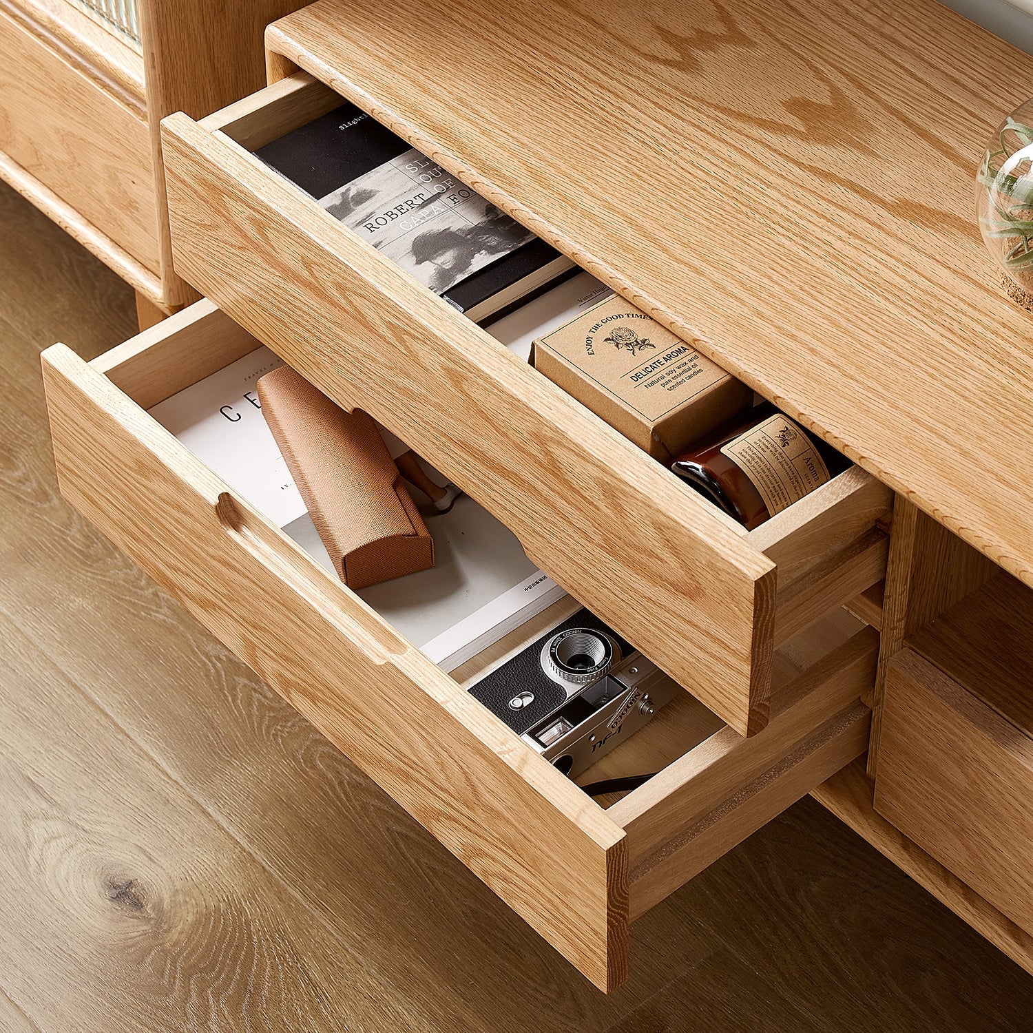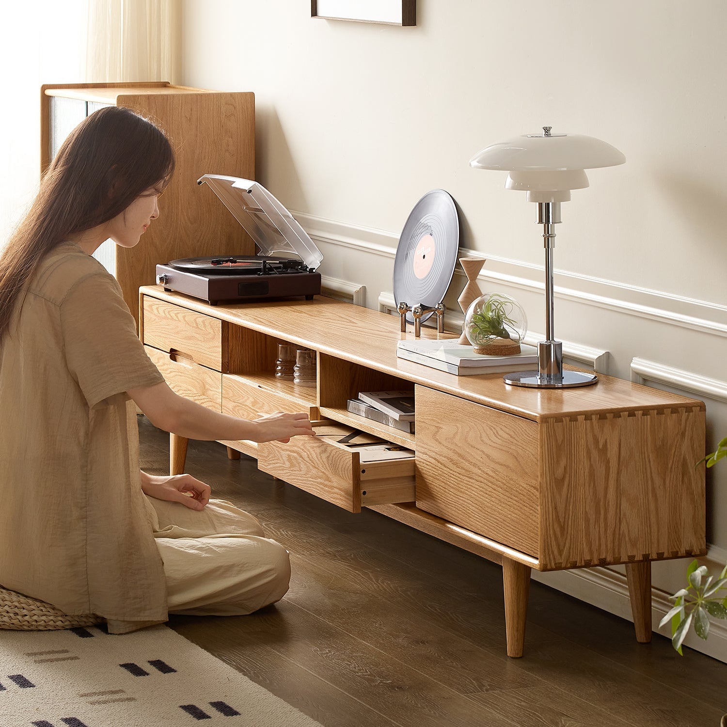 Scandinavian Oak Wood TV Console BERRY is crafted for durability and style, with spacious storage and a minimalist design that enhances your home atmosphere.