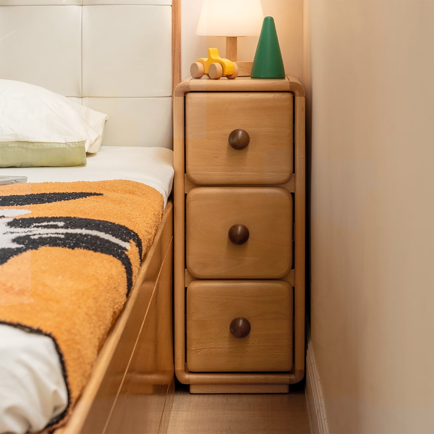 Scandinavian Wood Kids Side Table YUNAE features solid wood craftsmanship, rounded child safe edges, and practical storage for a warm and organised kids room.