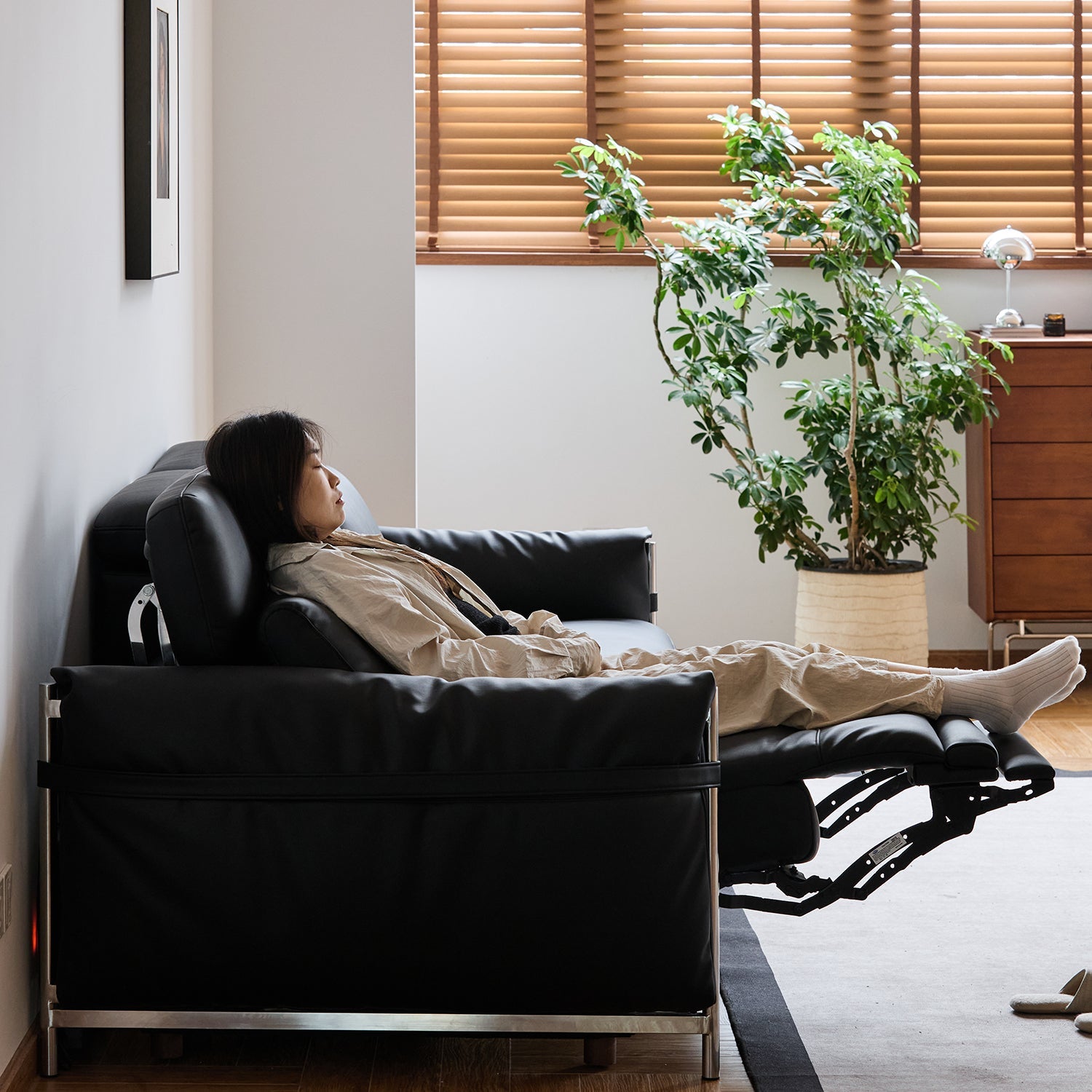 The zero-wall reclining mechanism lets you place the sofa close to the wall, saving over 100mm of floor space. It's ideal for smaller homes or apartments where maximizing every inch counts.