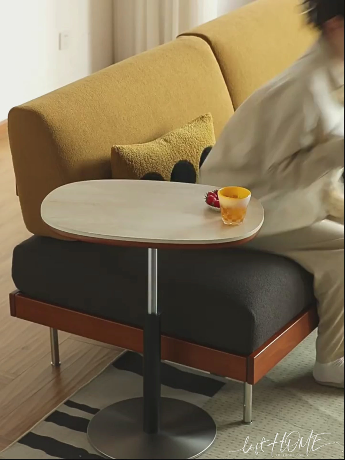 Scandinavian Sintered Stone Height Adjustable Side Table ROMAN offers sleek modern design, durable sintered stone surface, and easy height adjustment for versatile living spaces.
