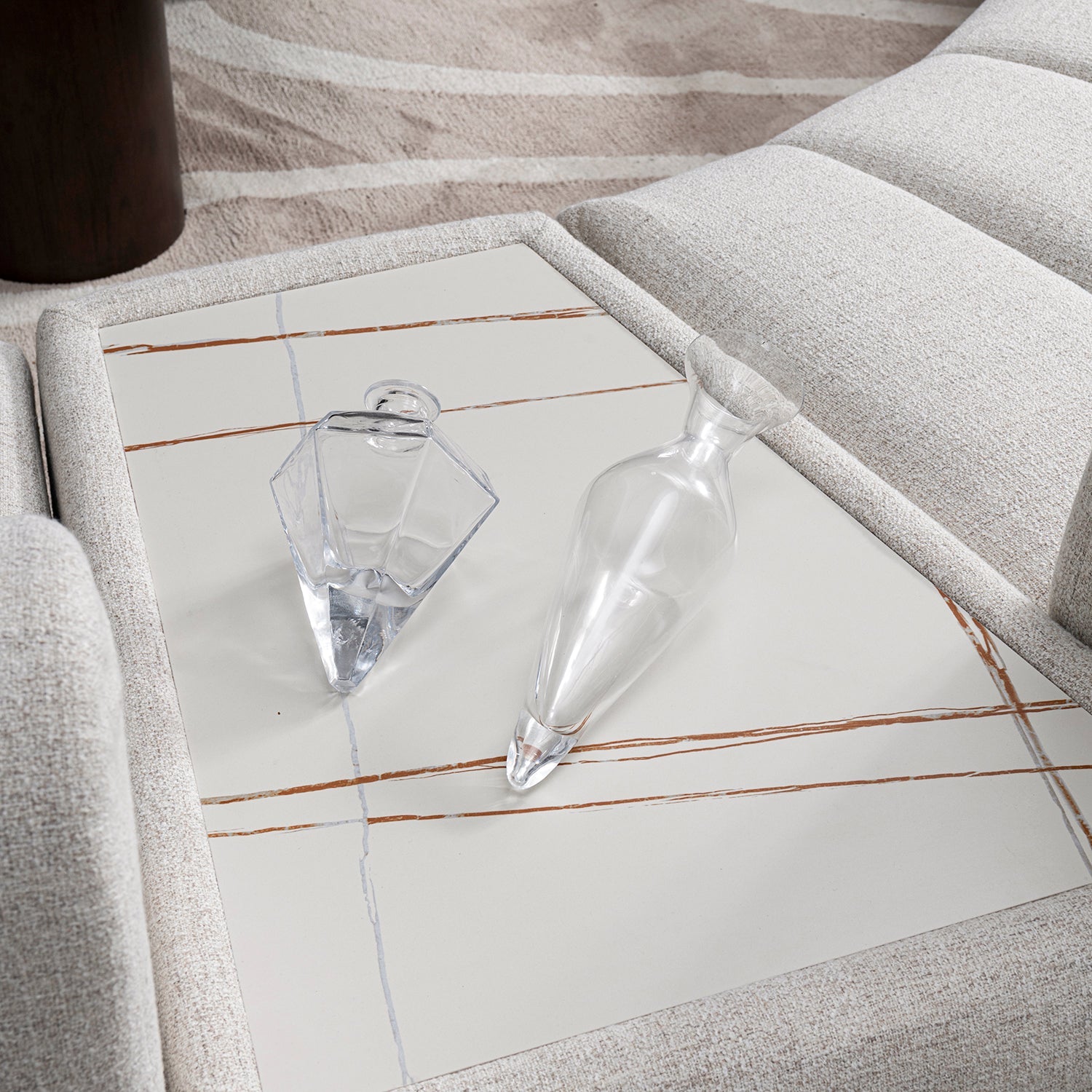 Modern Mixed Weave Fabric Sintered Stone Modular Sofa Side Table BENTO blends soft edges with a stone top perfect for modular setups and modern lifestyles.