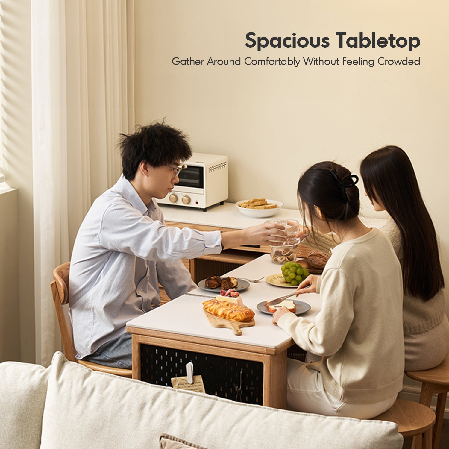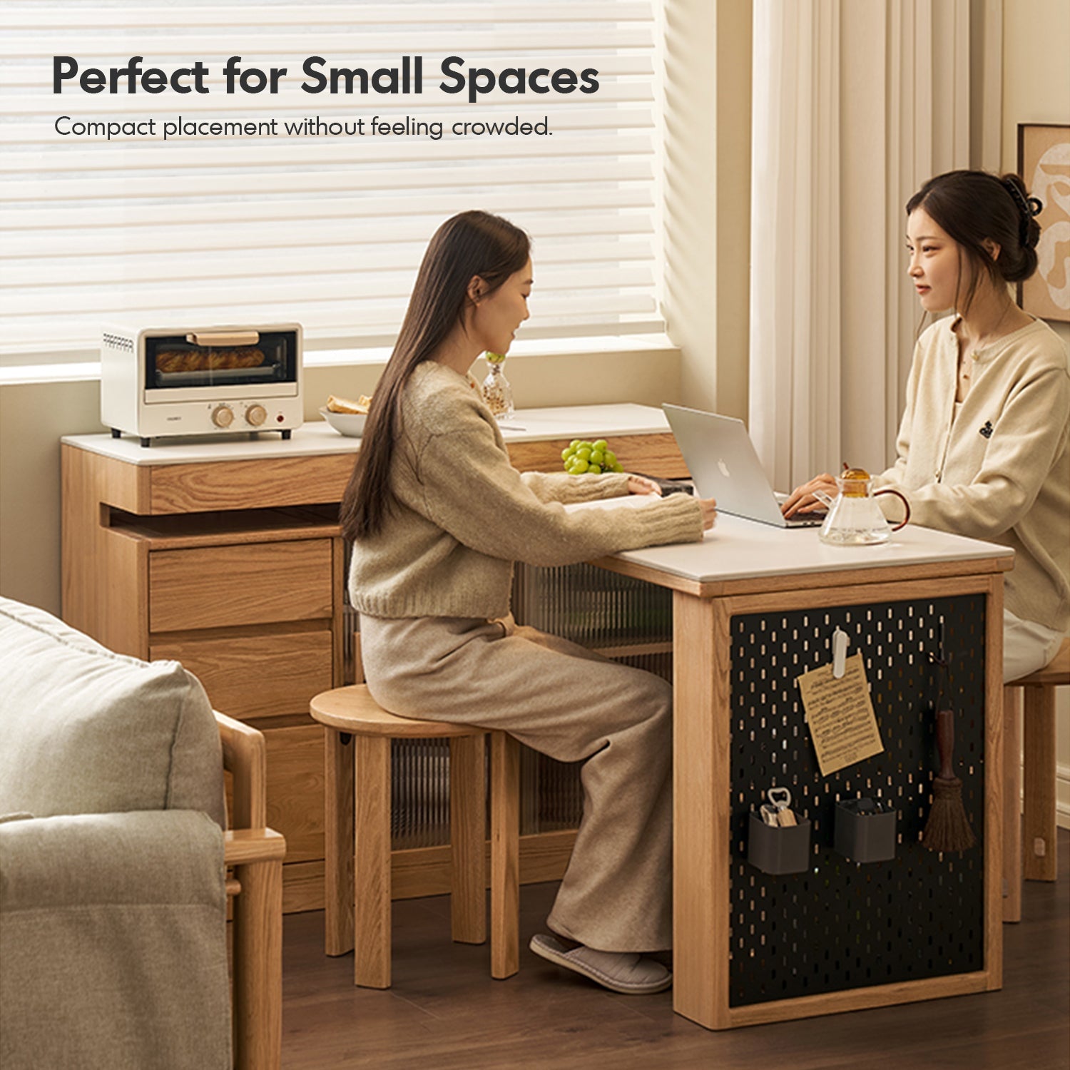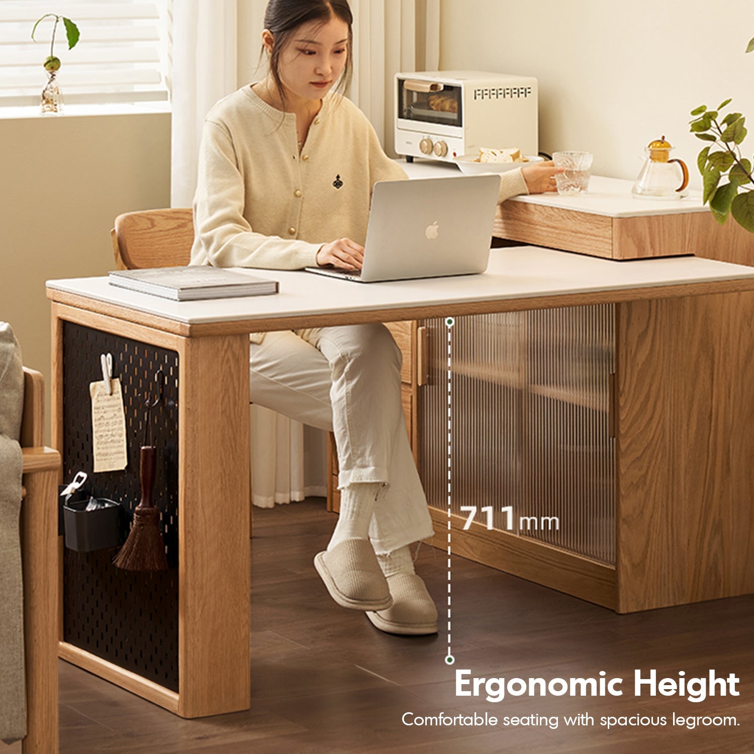Compact yet functional, with ergonomic height and ample legroom for comfortable dining or working. |