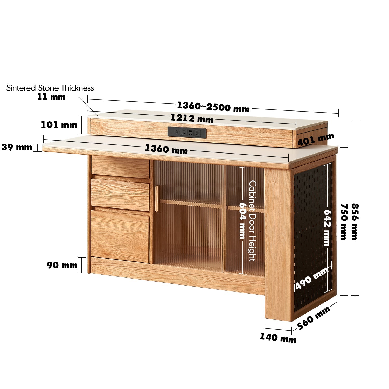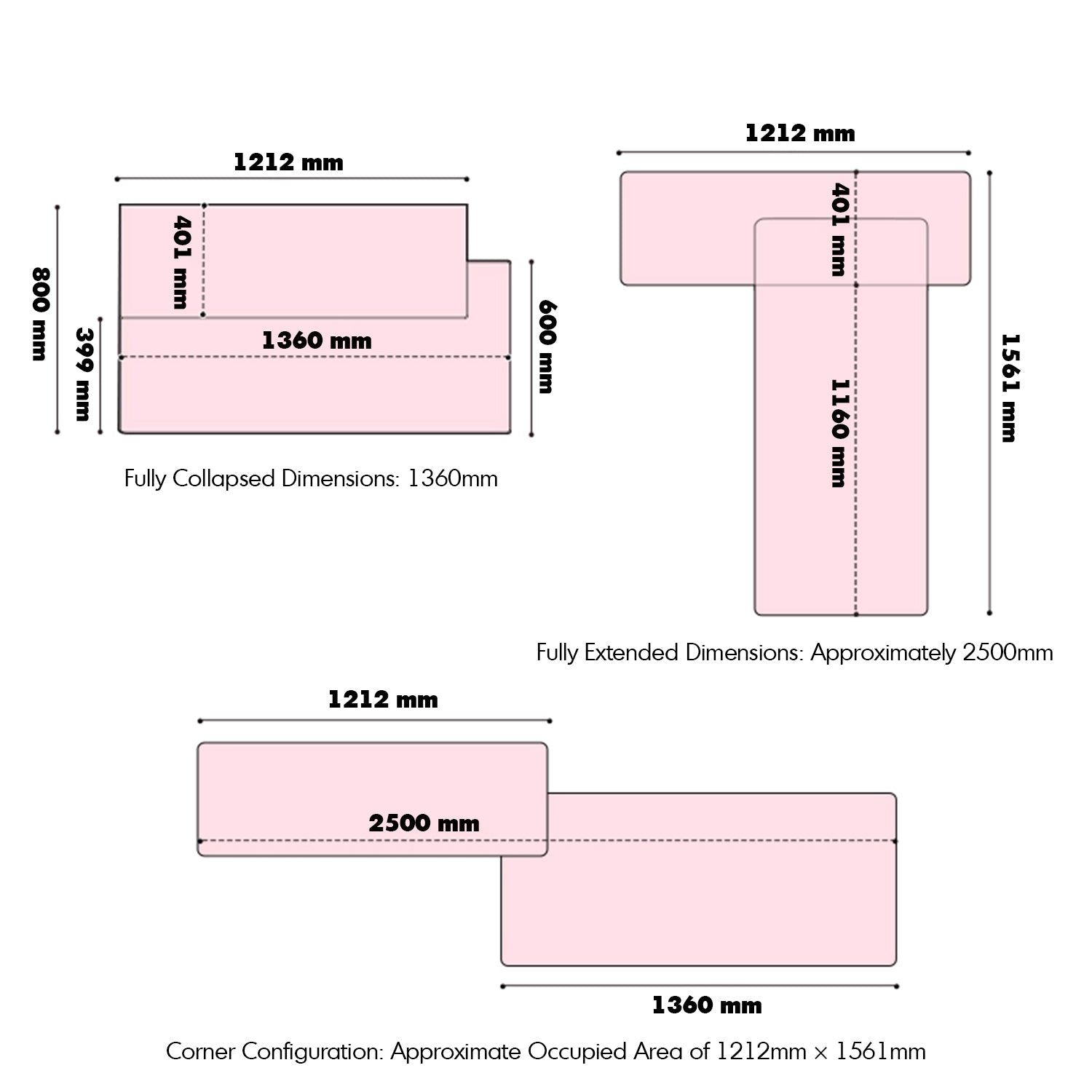 - L1360-2500 x W800 x H856mm