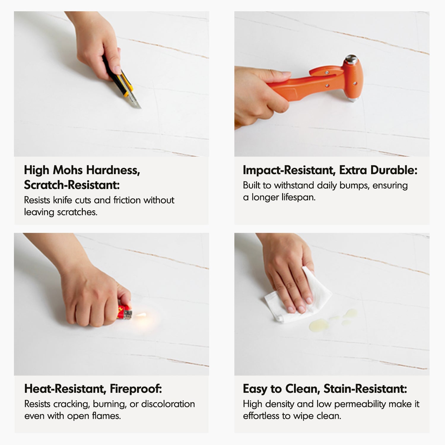 The sintered stone surface resists scratches, heat, and impact, ensuring long-lasting durability. Place hot items directly without worry. |