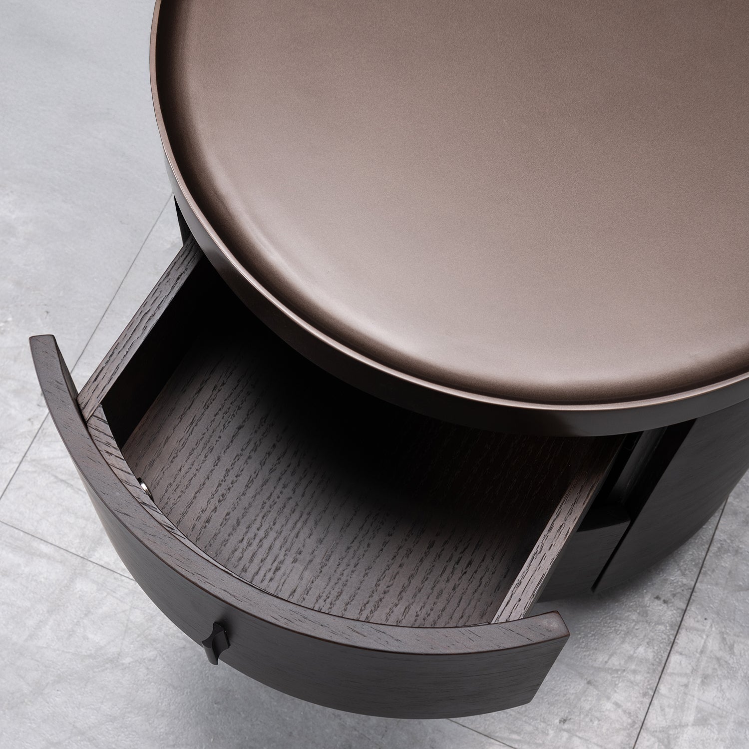 Japandi Plywood Round Side Table DUSK blends curved elegance, hidden storage, and safe detailing perfect for stylish, compact modern living spaces.