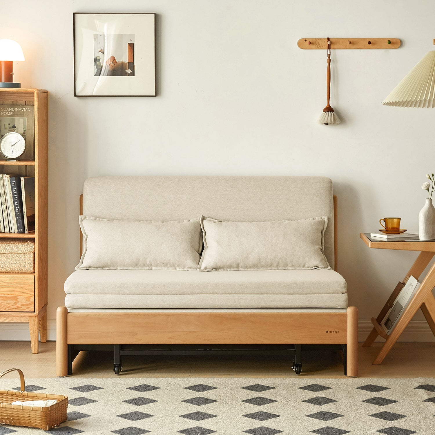 Scandinavian Beech Wood Cotton Fabric Recliner 2 Seater Sofa Bed FLEX
