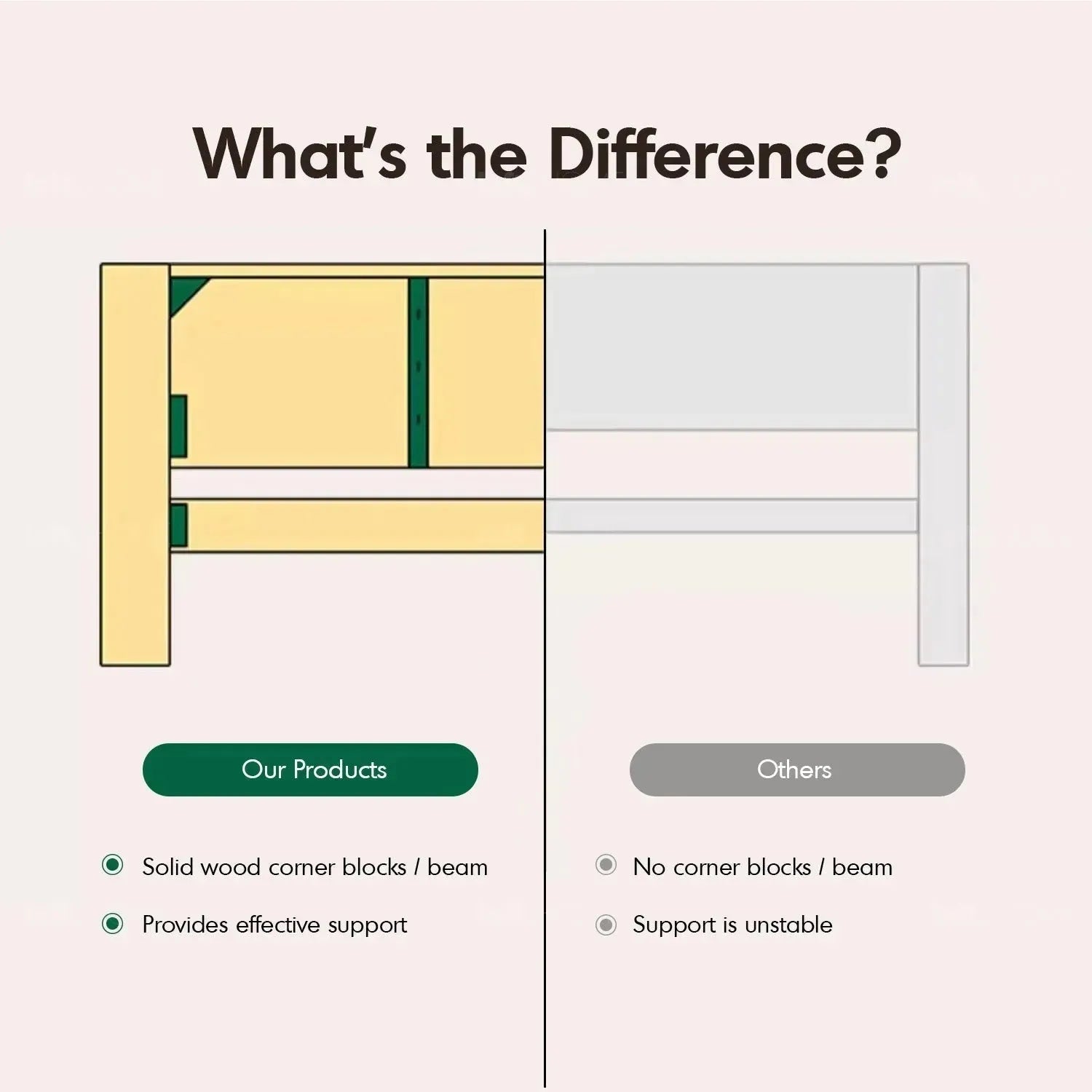 The wide and sturdy 150mm bed frame, reinforced with poplar wood planks, provides uniform pressure distribution, ensuring optimal mattress support and a restful sleep without any sagging issues.