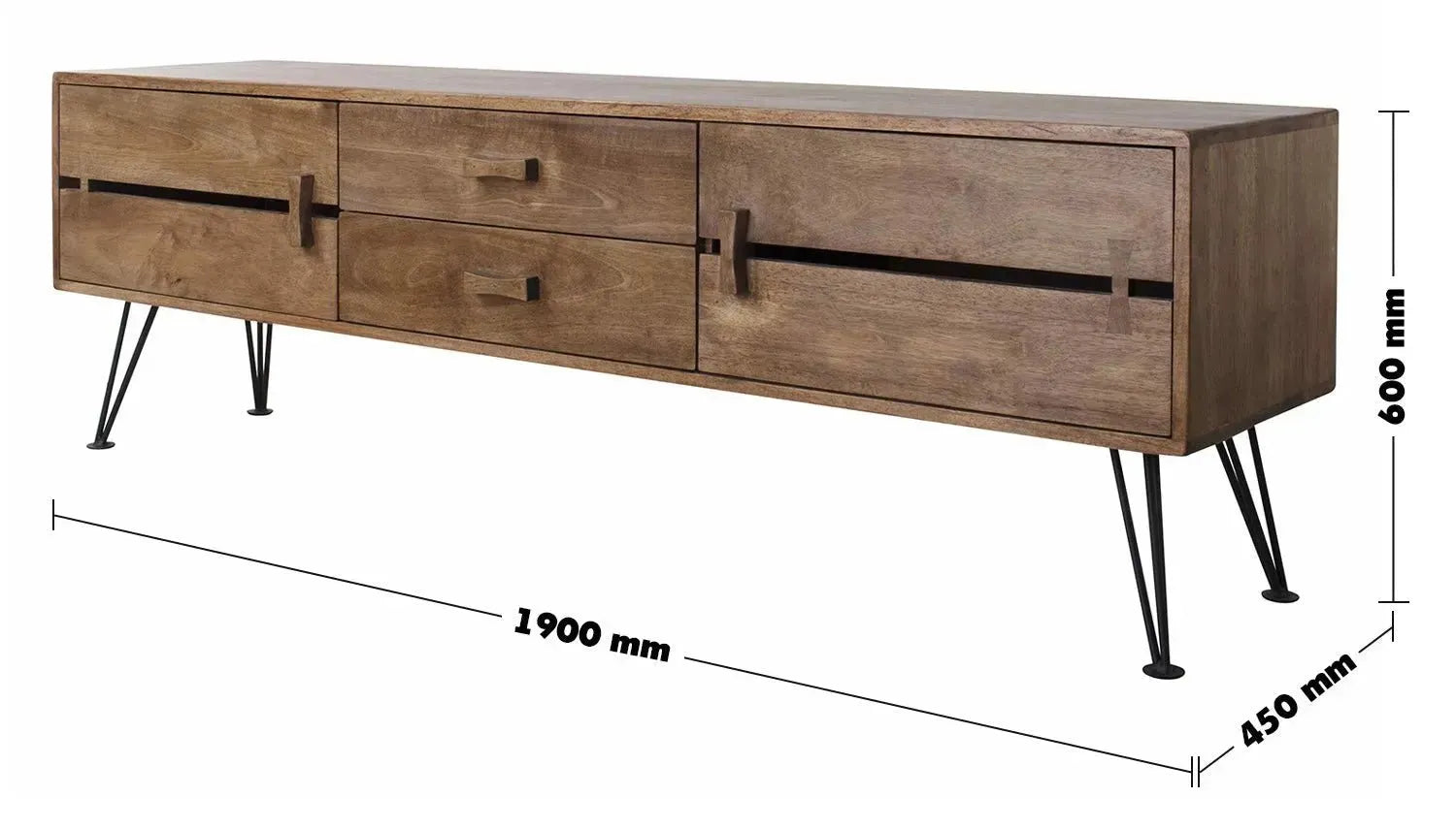 - L1900 x W450 x H600mm