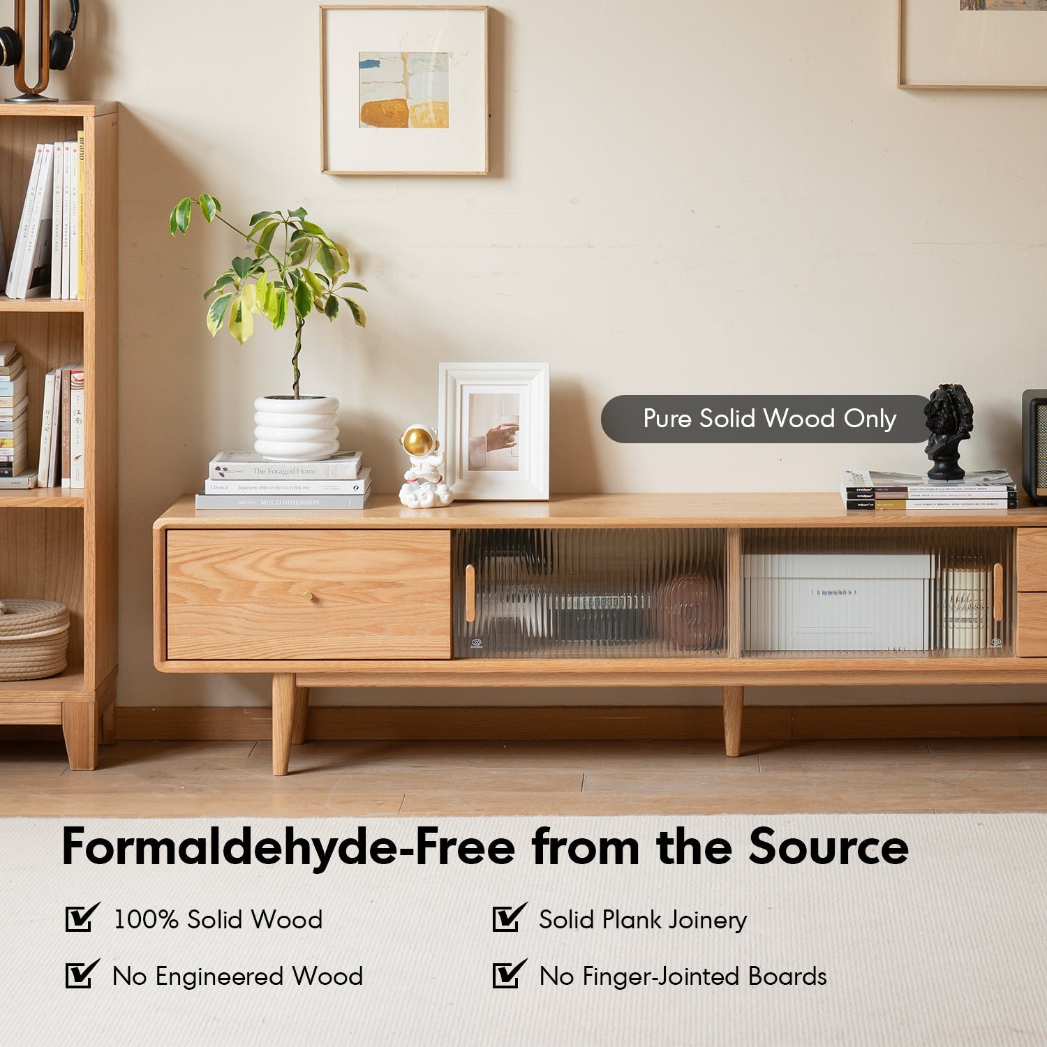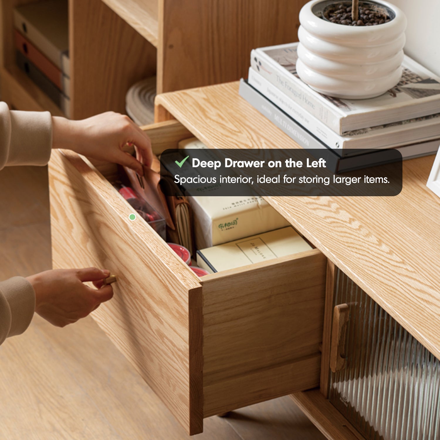 Scandinavian Oak Wood Moru Glass TV Console VISTA