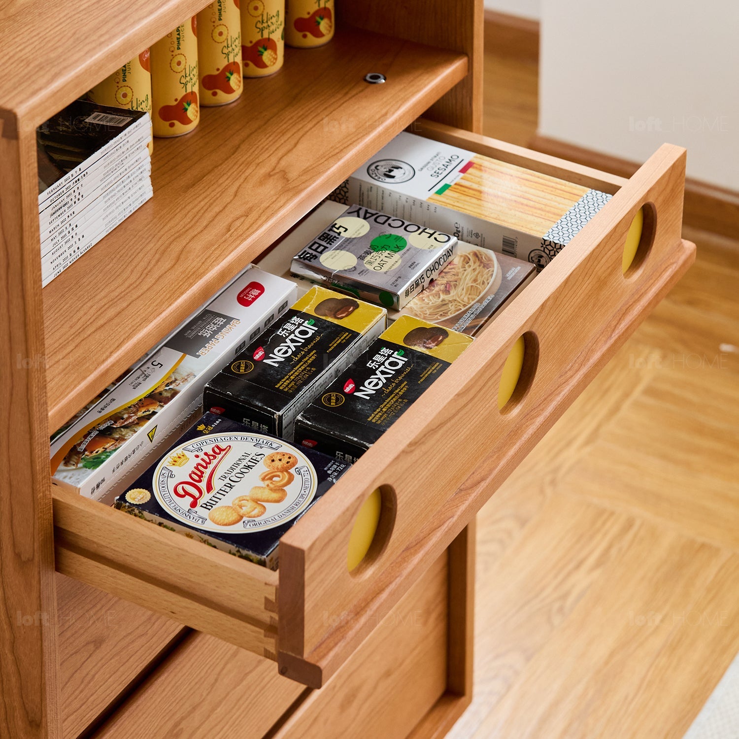 Four large drawers offer categorized storage, keeping clutter hidden and interiors neat. |