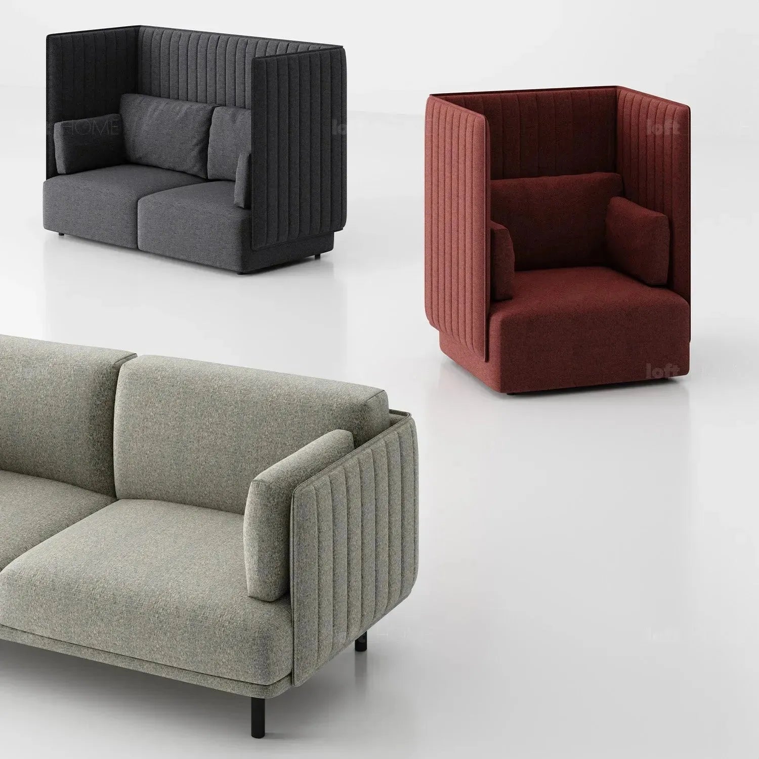 Available in single and double-seater versions, the high-back design enhances privacy and provides excellent support, perfect for lounges and meeting areas. |