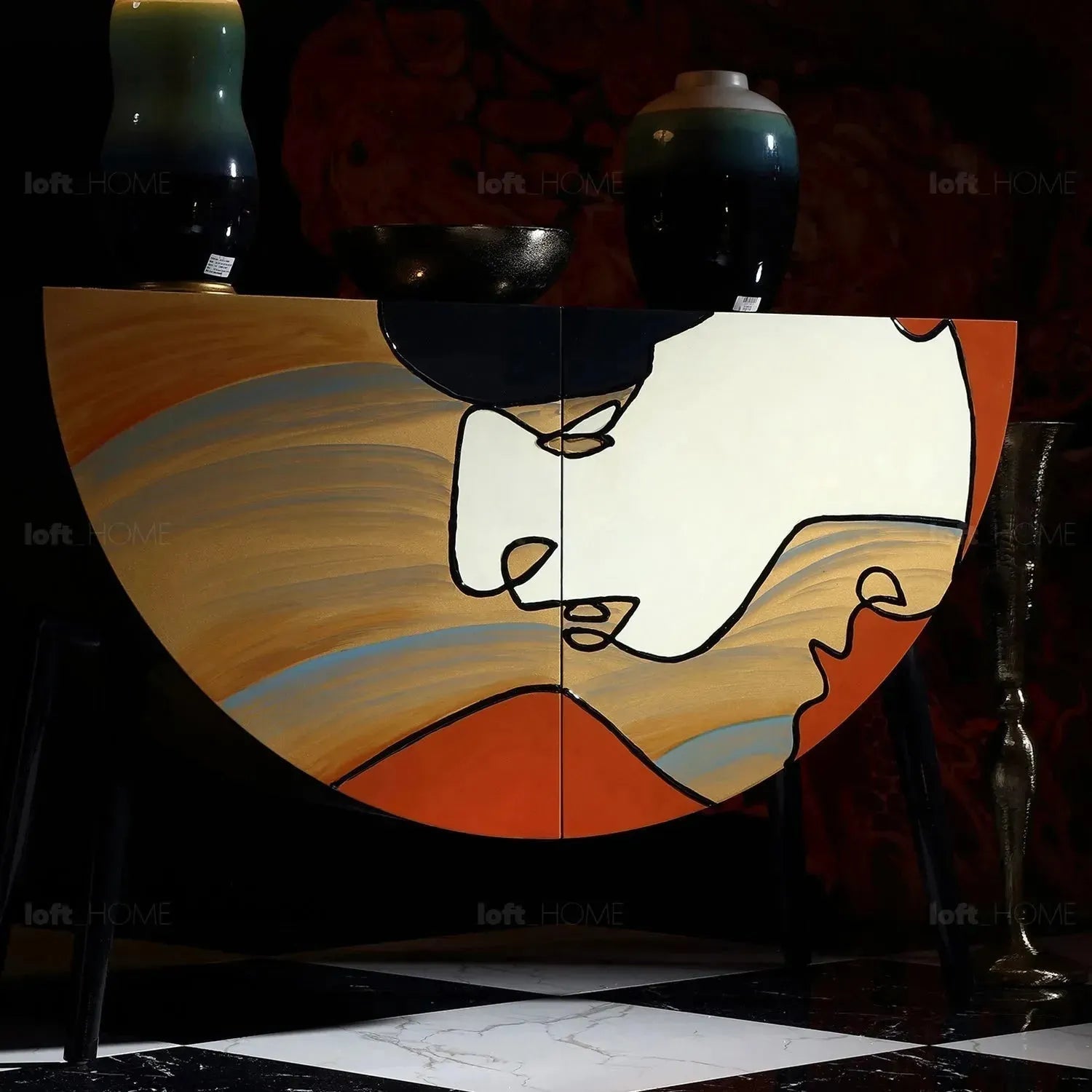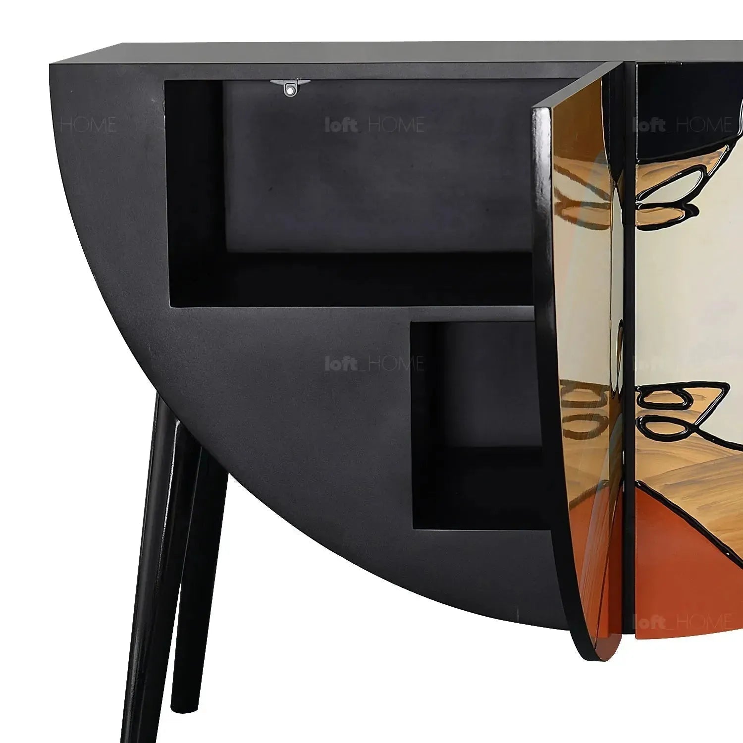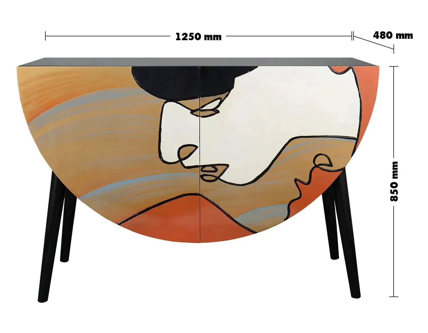 L1250 x W480 x H850mm, this cabinet storage unit is not only stylish but it also offers plenty of space and can be a real centerpiece wherever you decide to put it in your home. The doors of the cabinets are eco-engineered hardwood panels painted by hand with artwork. Every stroke is character and uniqueness, so this storage cabinet means the home accessory functional piece of art that completes your eclectic mode of life.